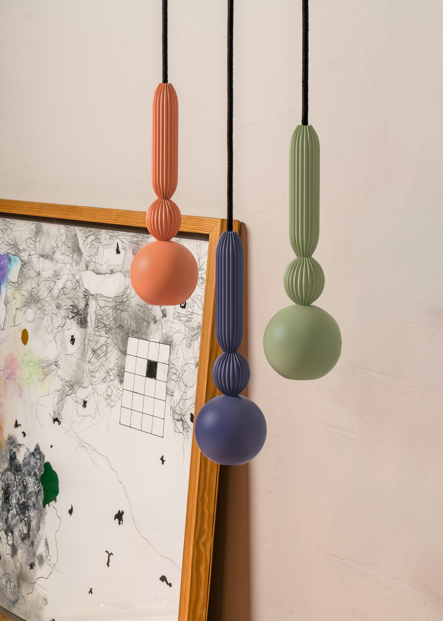 Choice of colour for the steel sphere and brass rings from the LOFTLIGHT palette