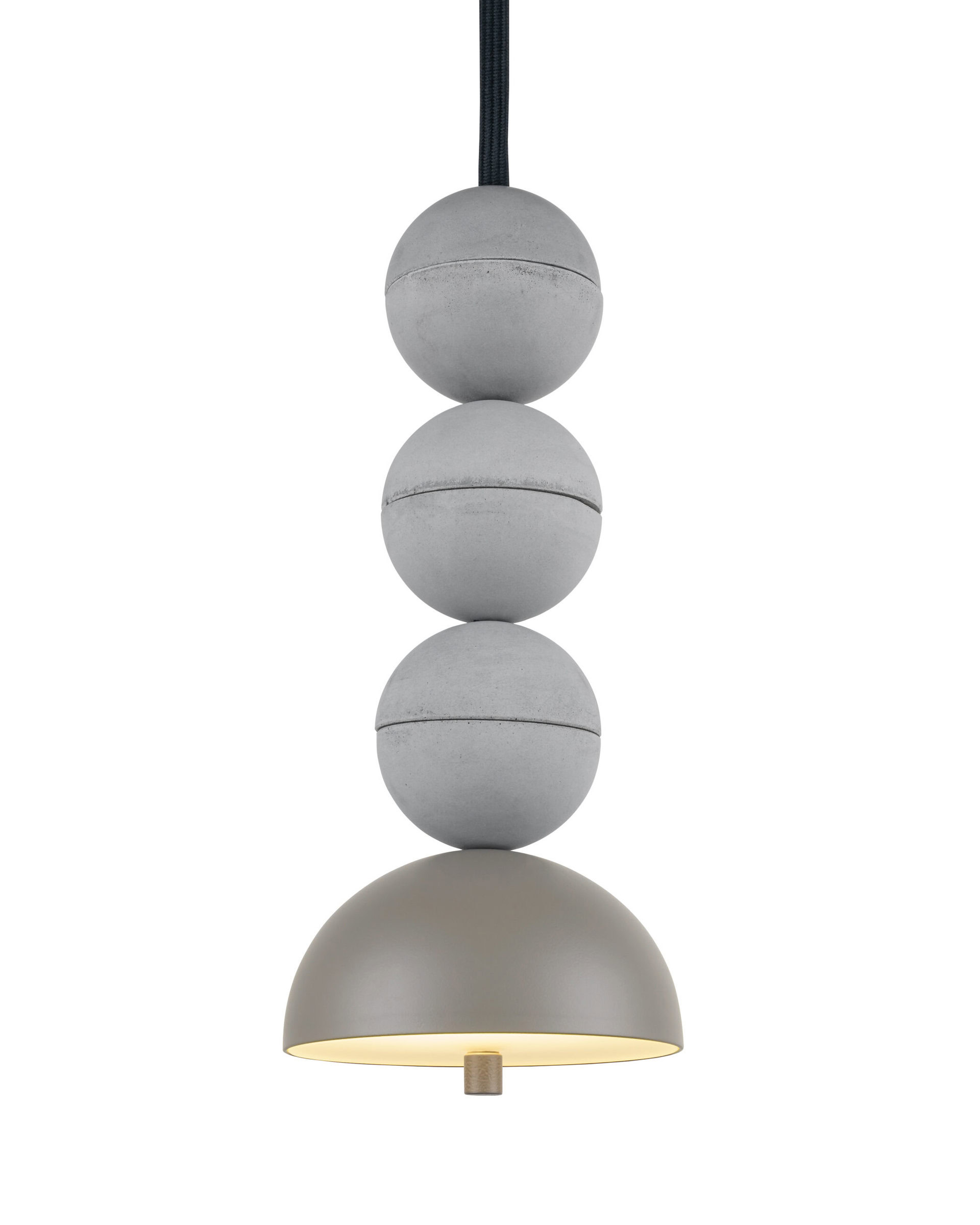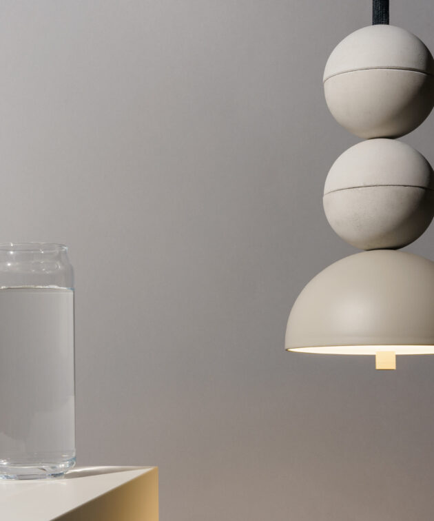 Bosfor is a pendant lamp that combines hand-cast concrete spheres with a simple, geometric aluminium shade. Each concrete element has its own structure and shade, making every lamp in this series unique. The subtle contrast between raw concrete and precisely finished aluminium gives the lamp a contemporary, architectural character. The model is available in two- and three-sphere versions, as well as in multi configurations.