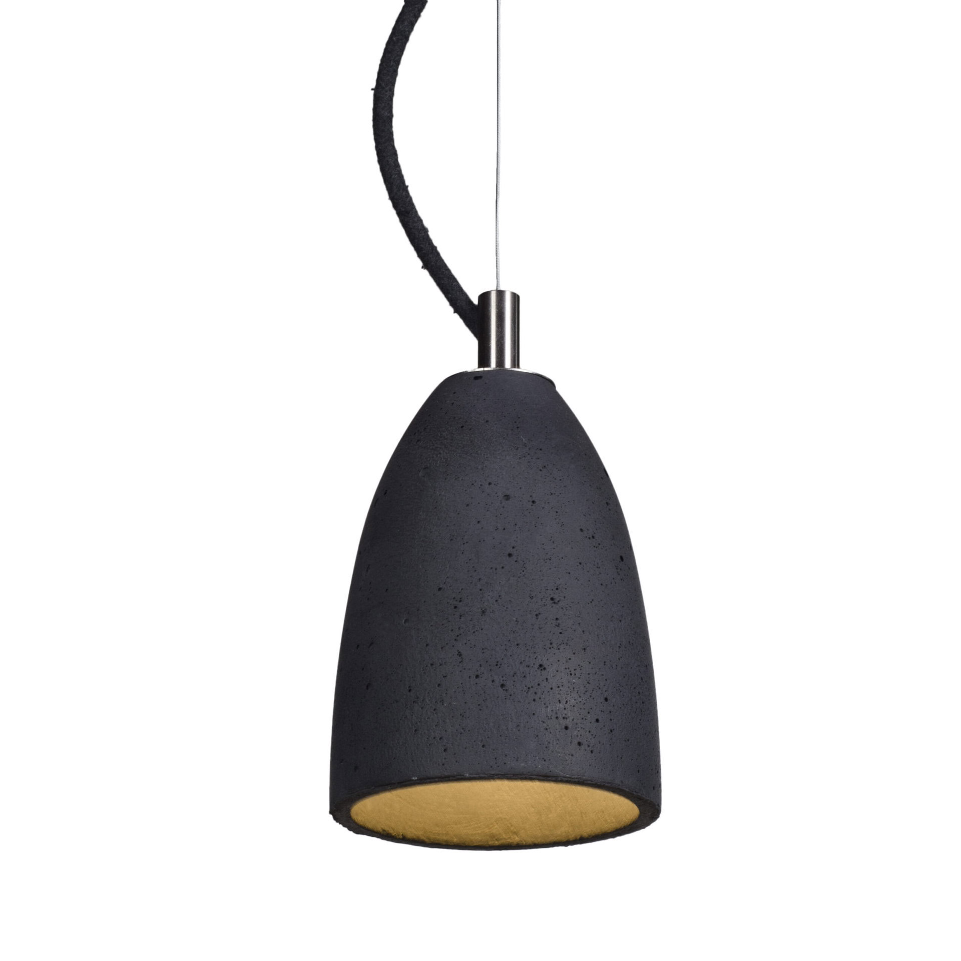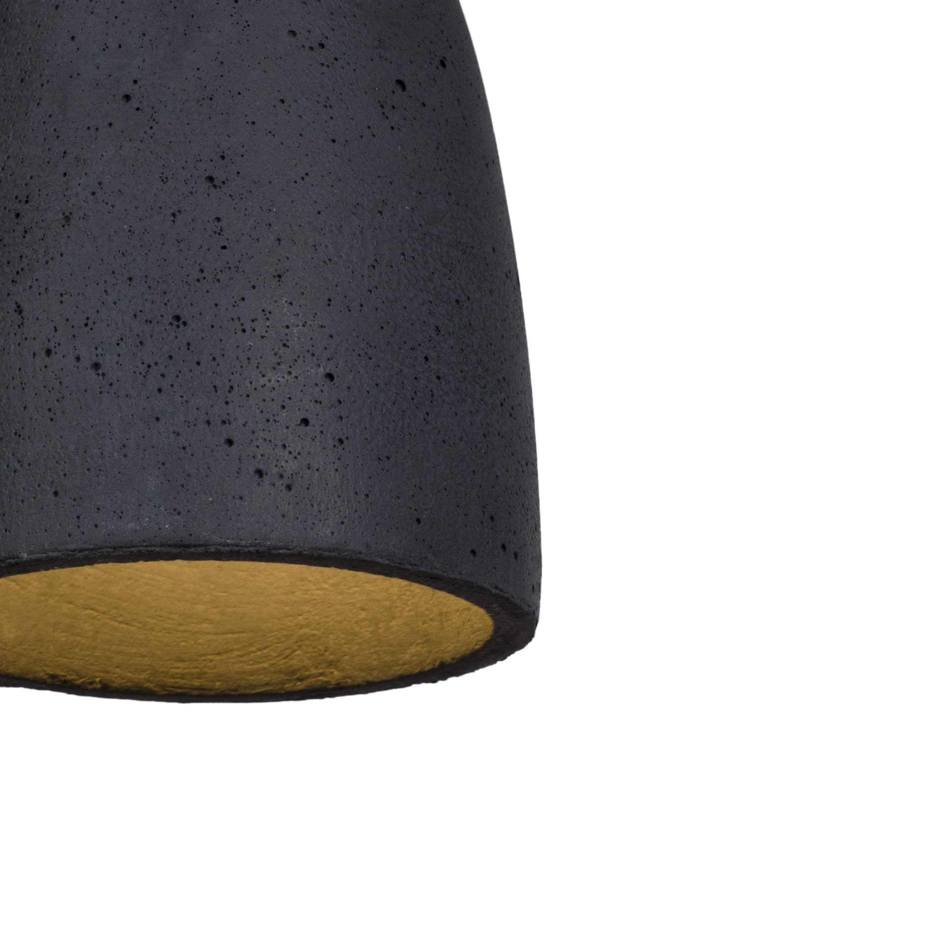 Ceiling rose: flat concrete, colour-matched to the shade