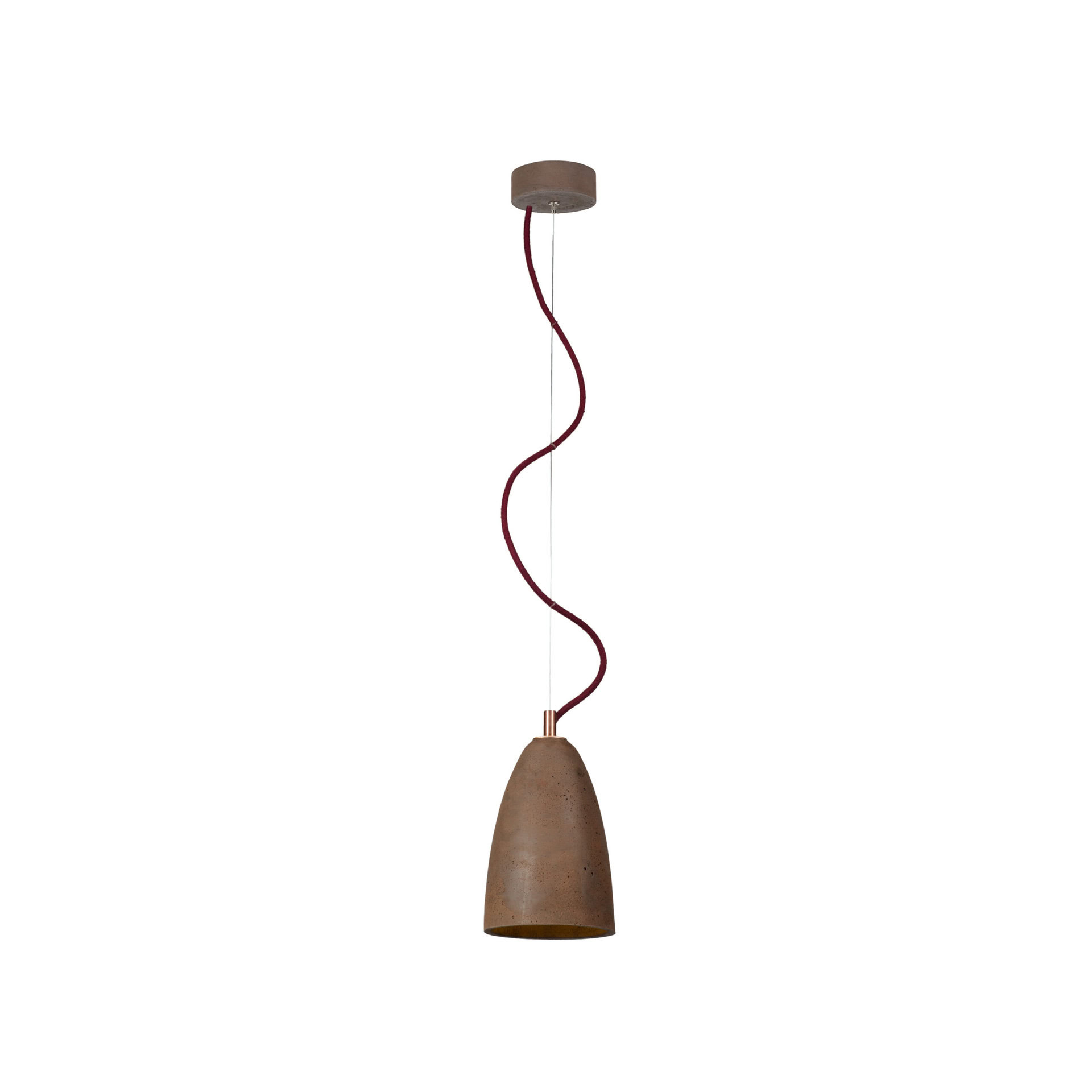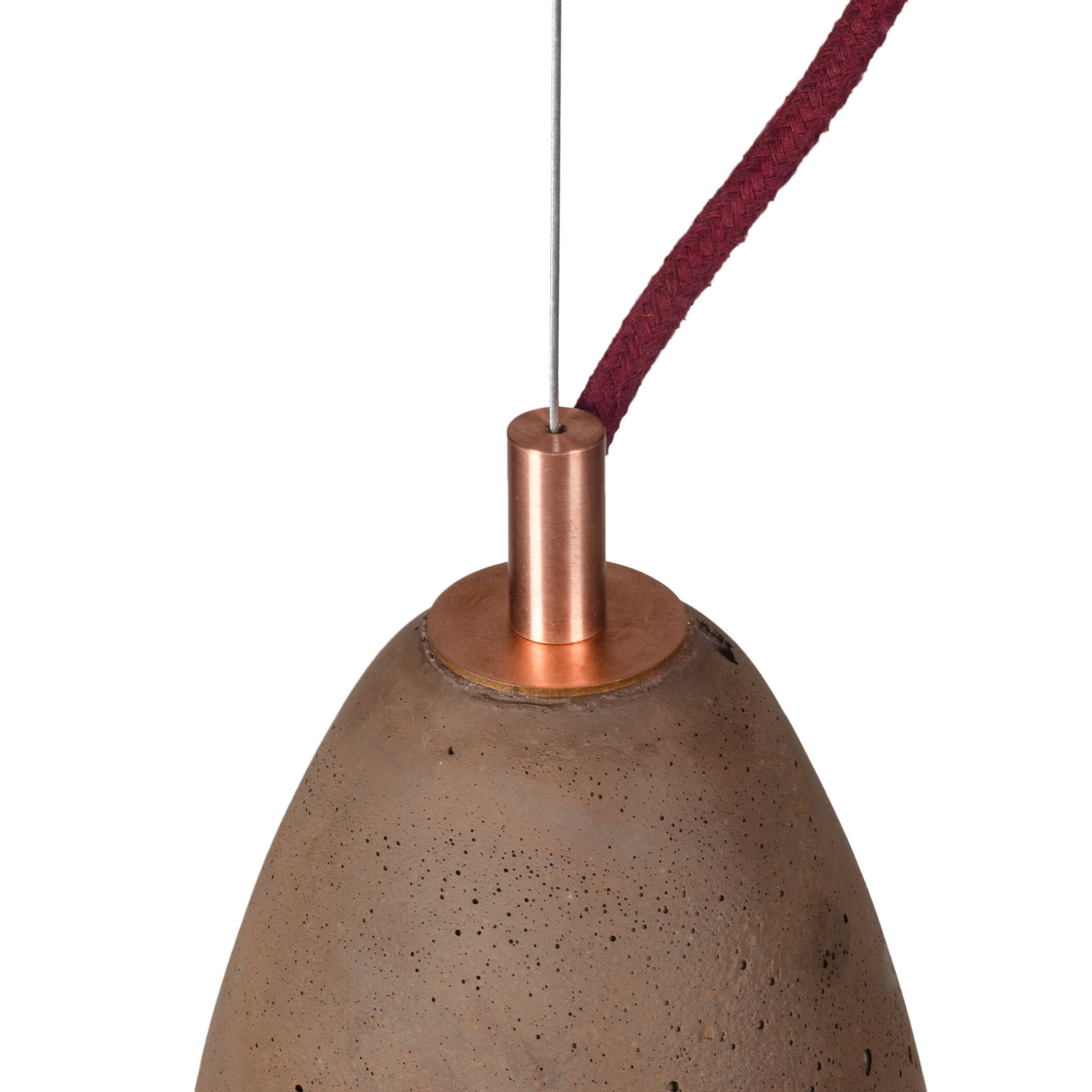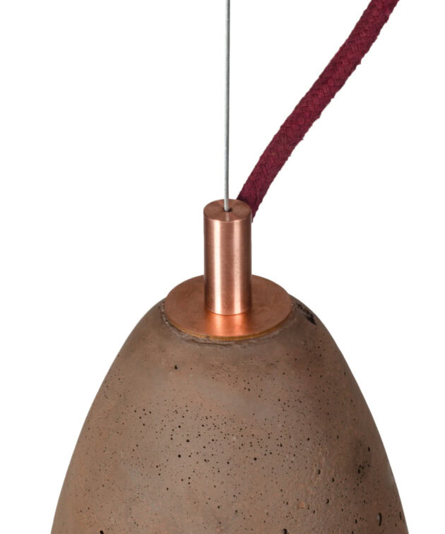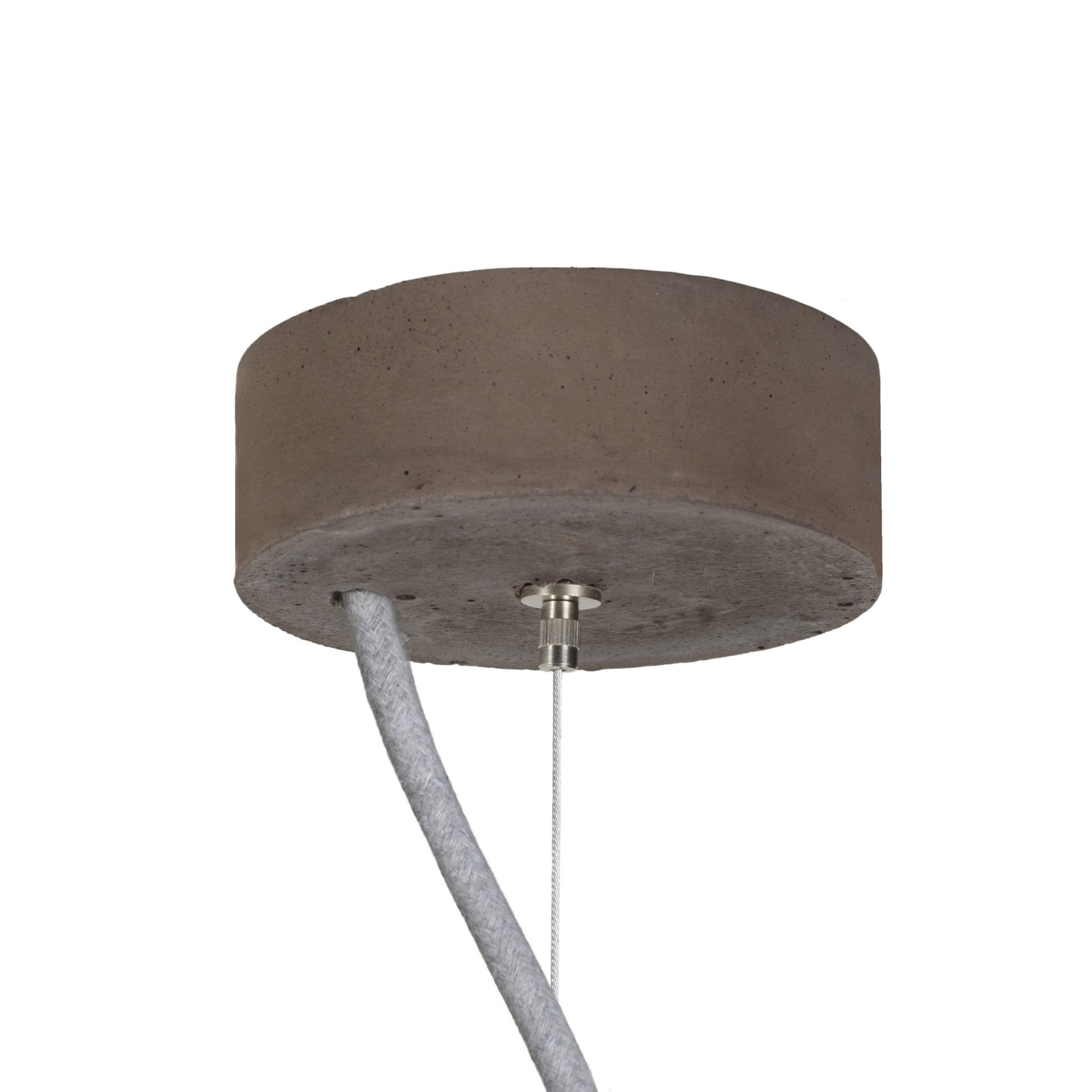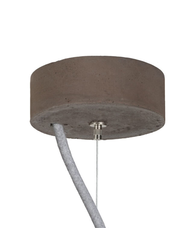 Ceiling rose: flat concrete, colour-matched to the shade