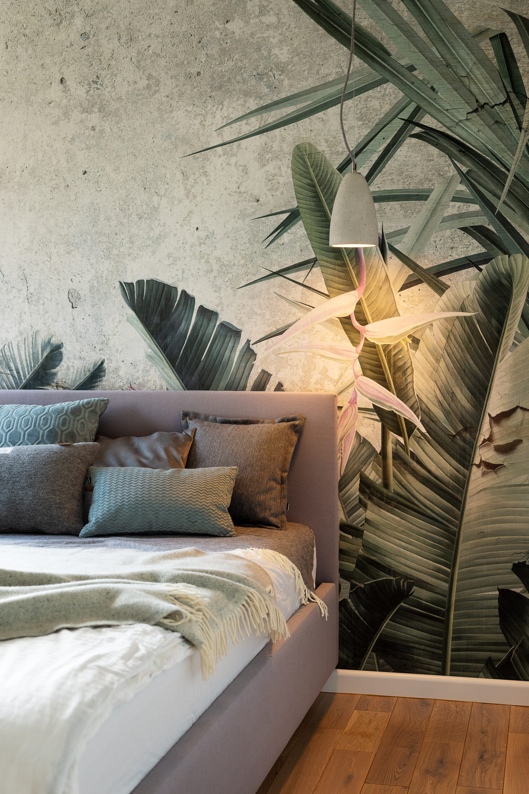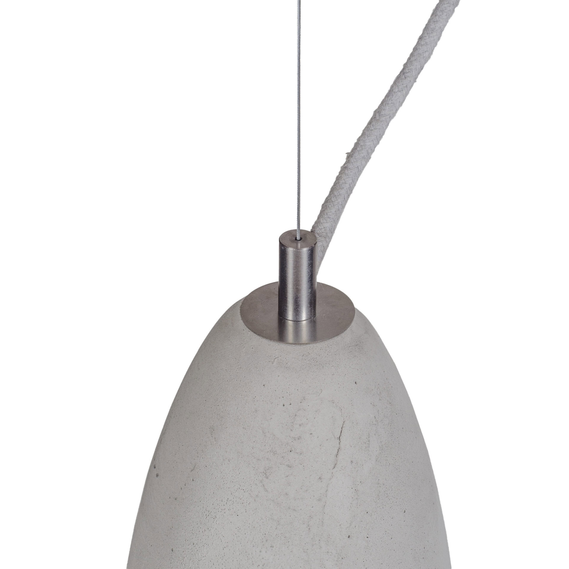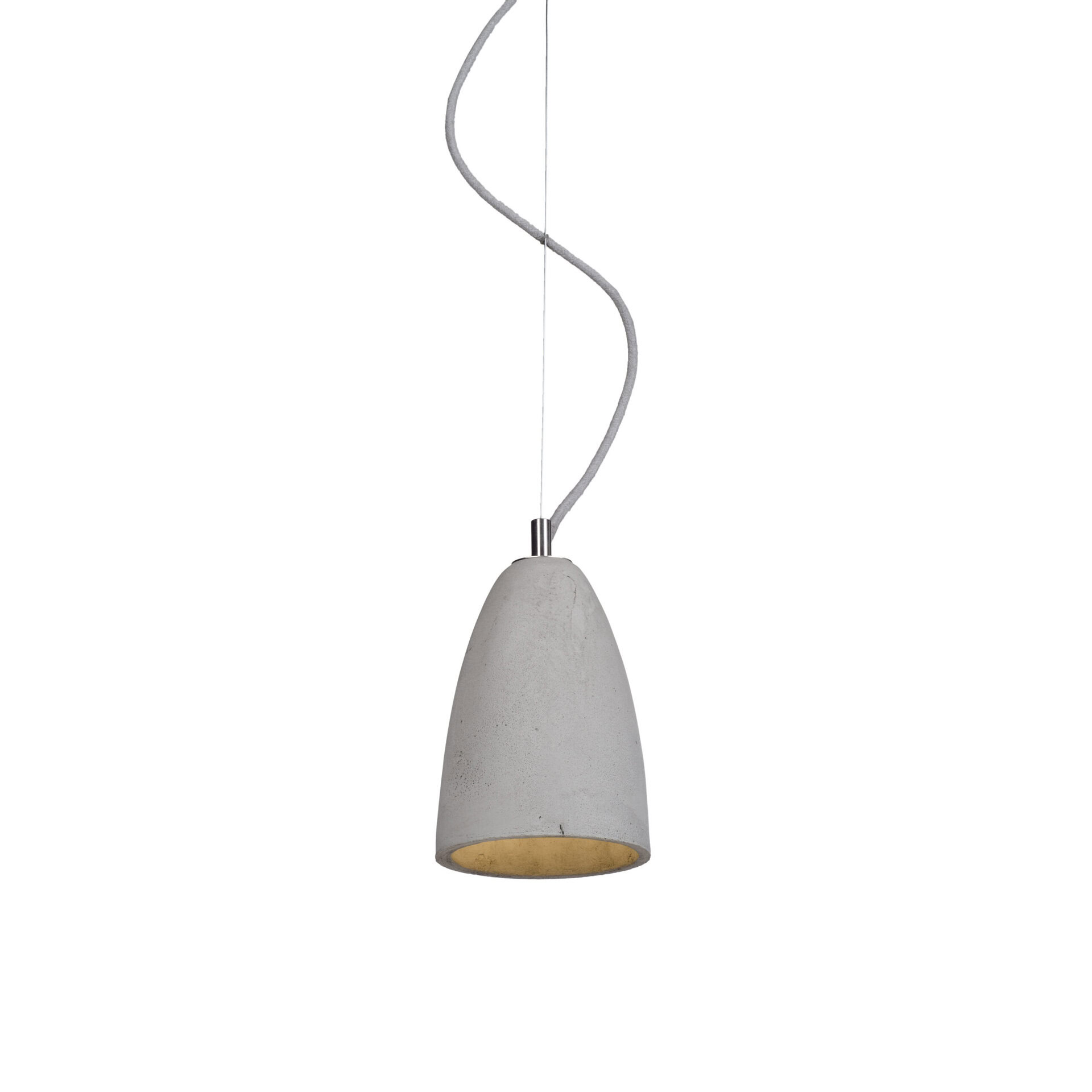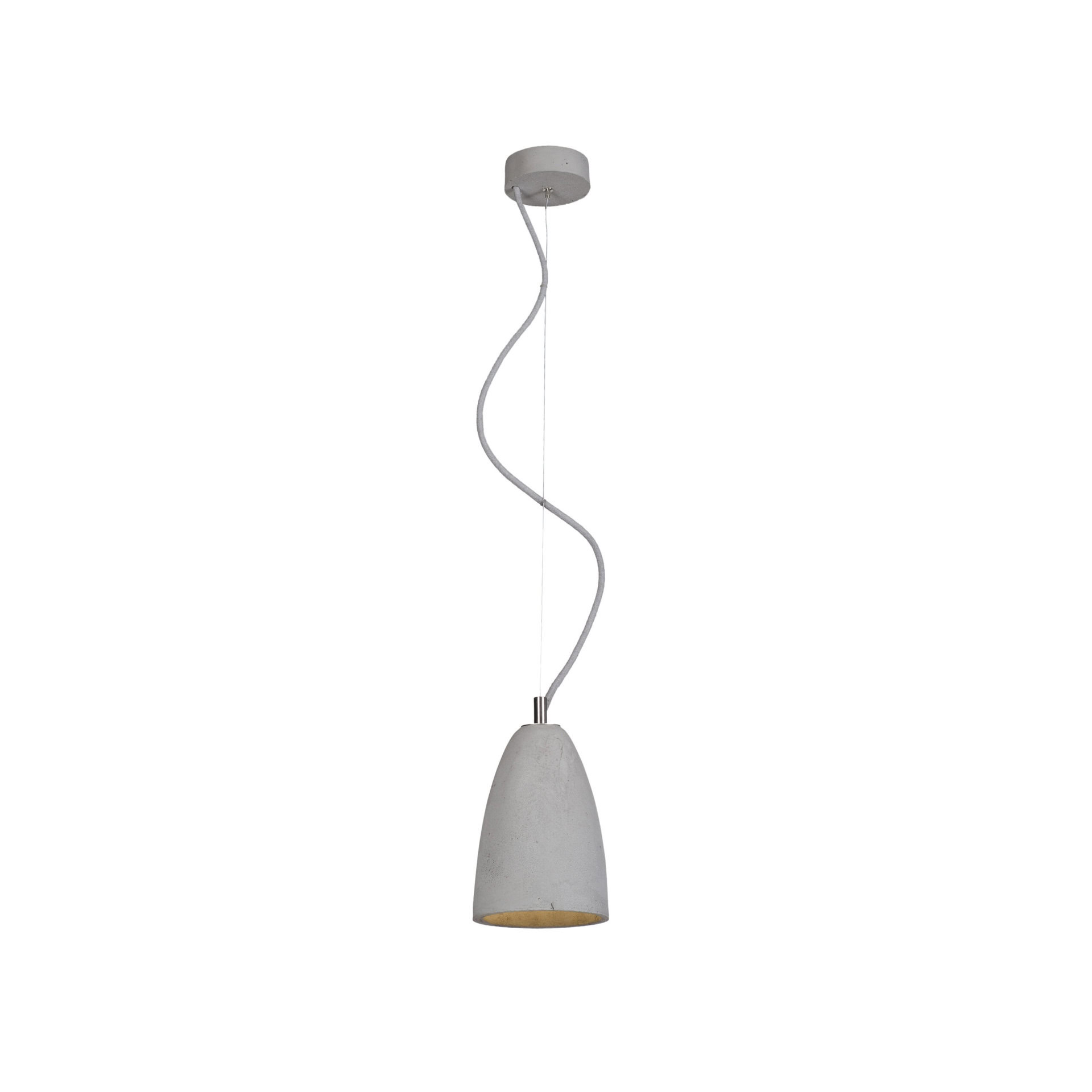 Ceiling rose: flat concrete, colour-matched to the shade