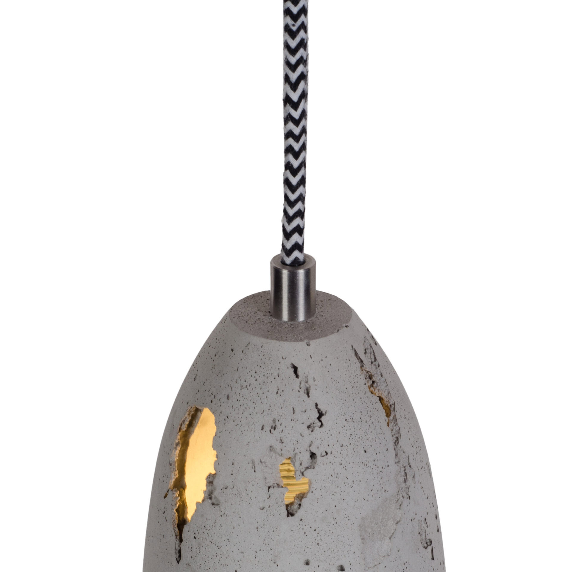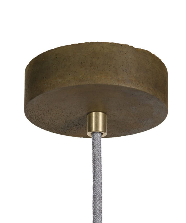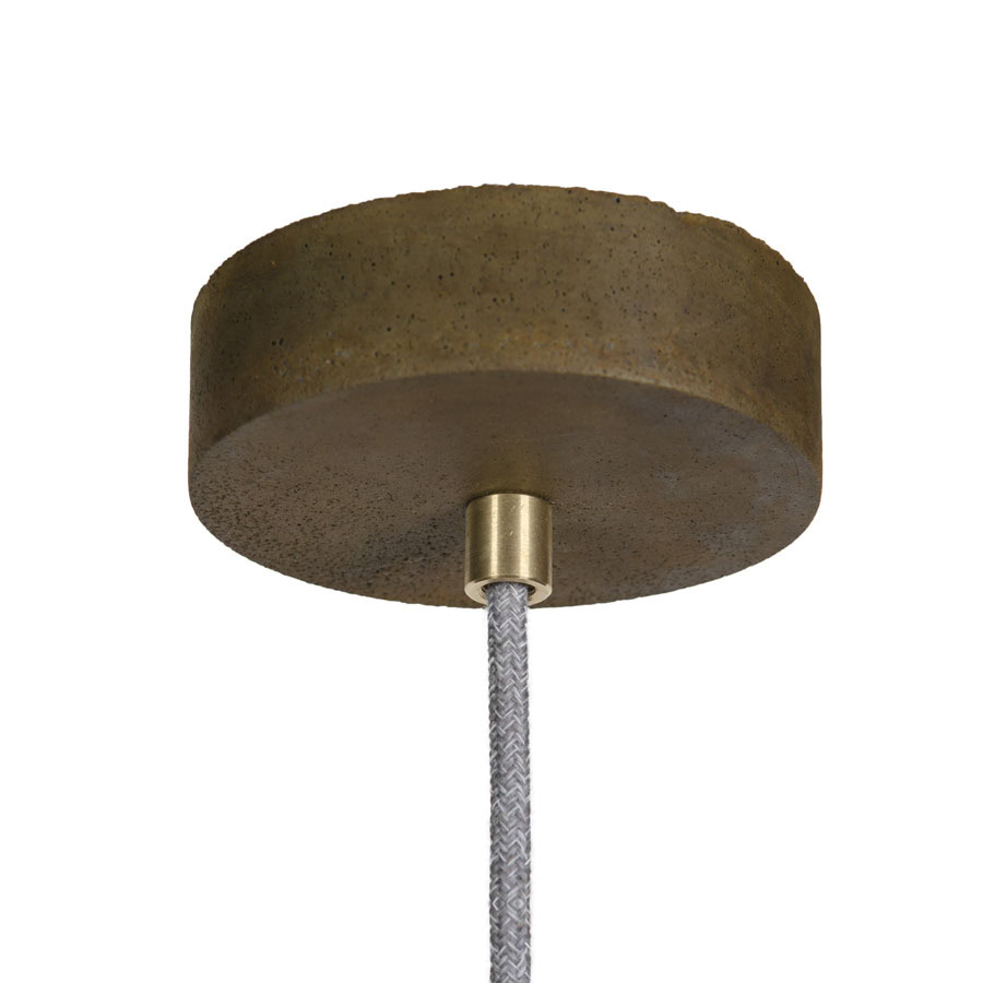 Ceiling rose: flat concrete, colour-matched to the shade