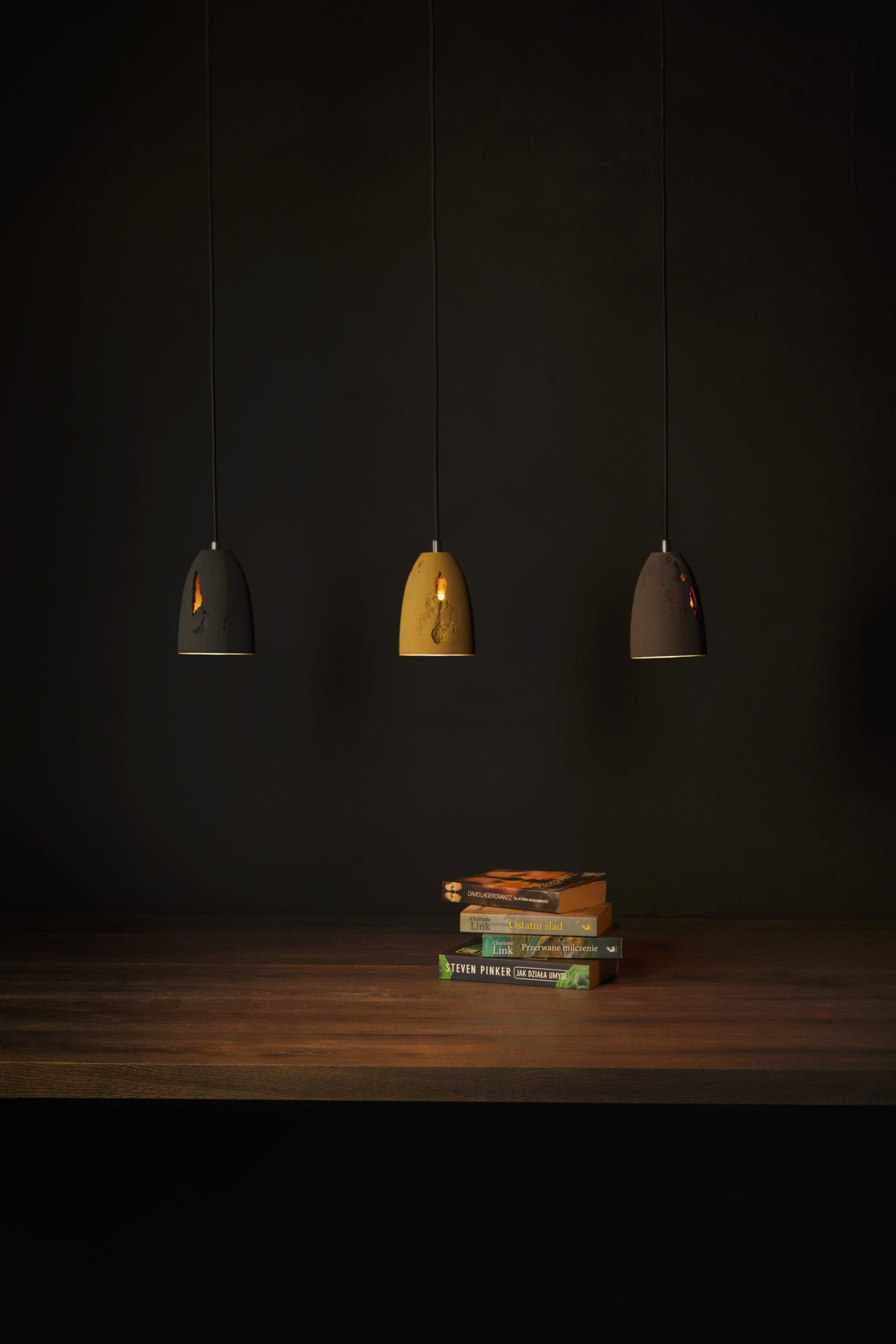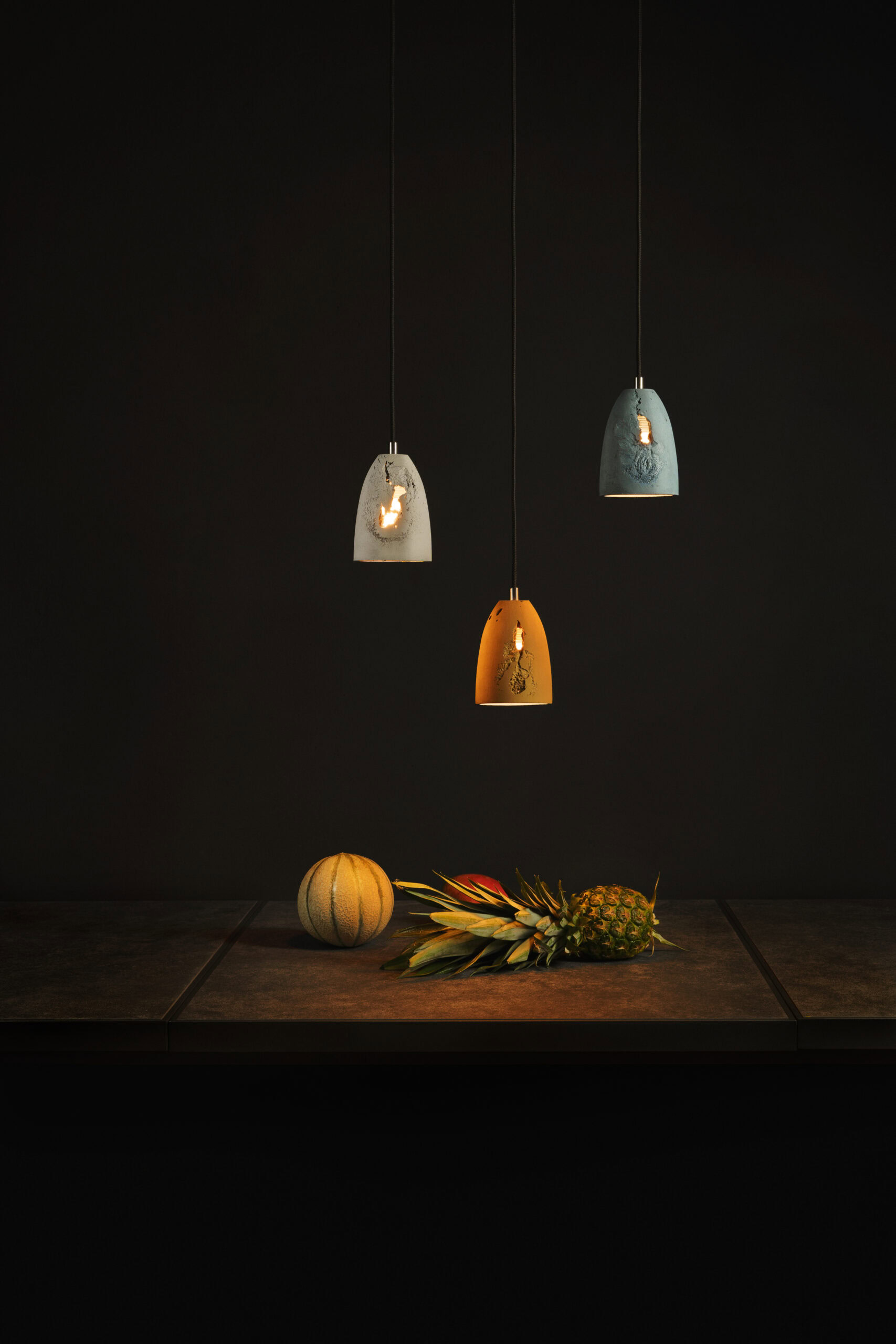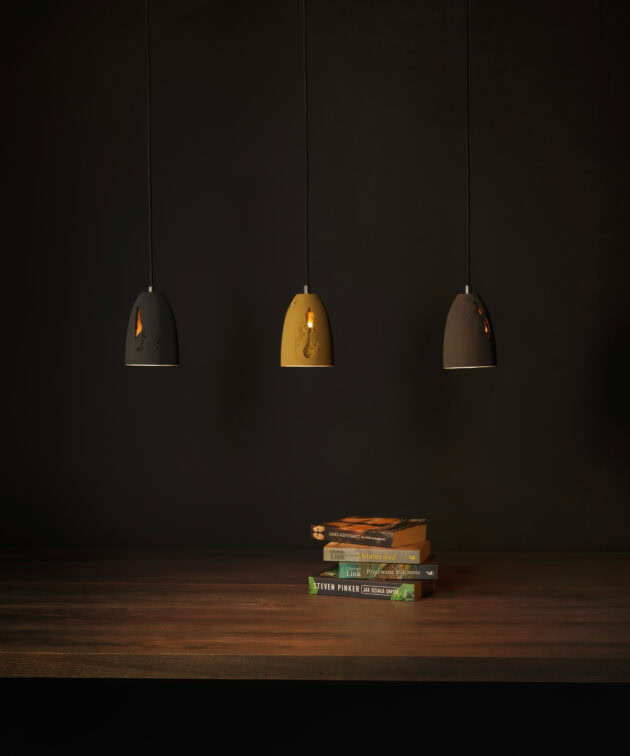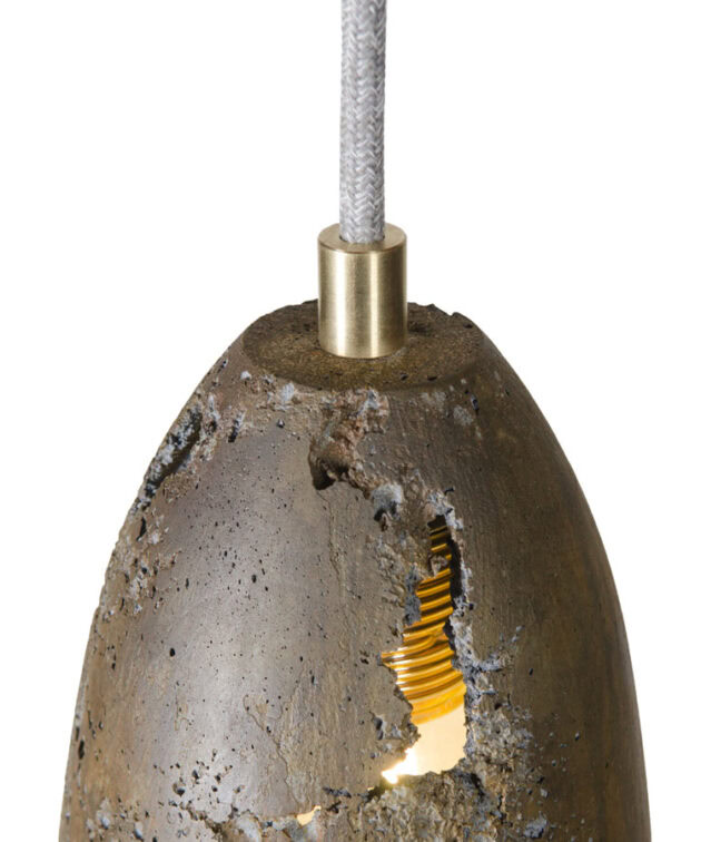 Febe Volcano is a unique series of pendant lamps made of hand-cast architectural concrete. Unlike the smooth surfaces of the classic Febe, this variant is distinguished by cavities, cracks, and natural imperfections created in a controlled casting process. Each lamp carries its own pattern of structure – like a rock shaped by time. Lighting with character, it brings authenticity and the strength of raw material into interiors.