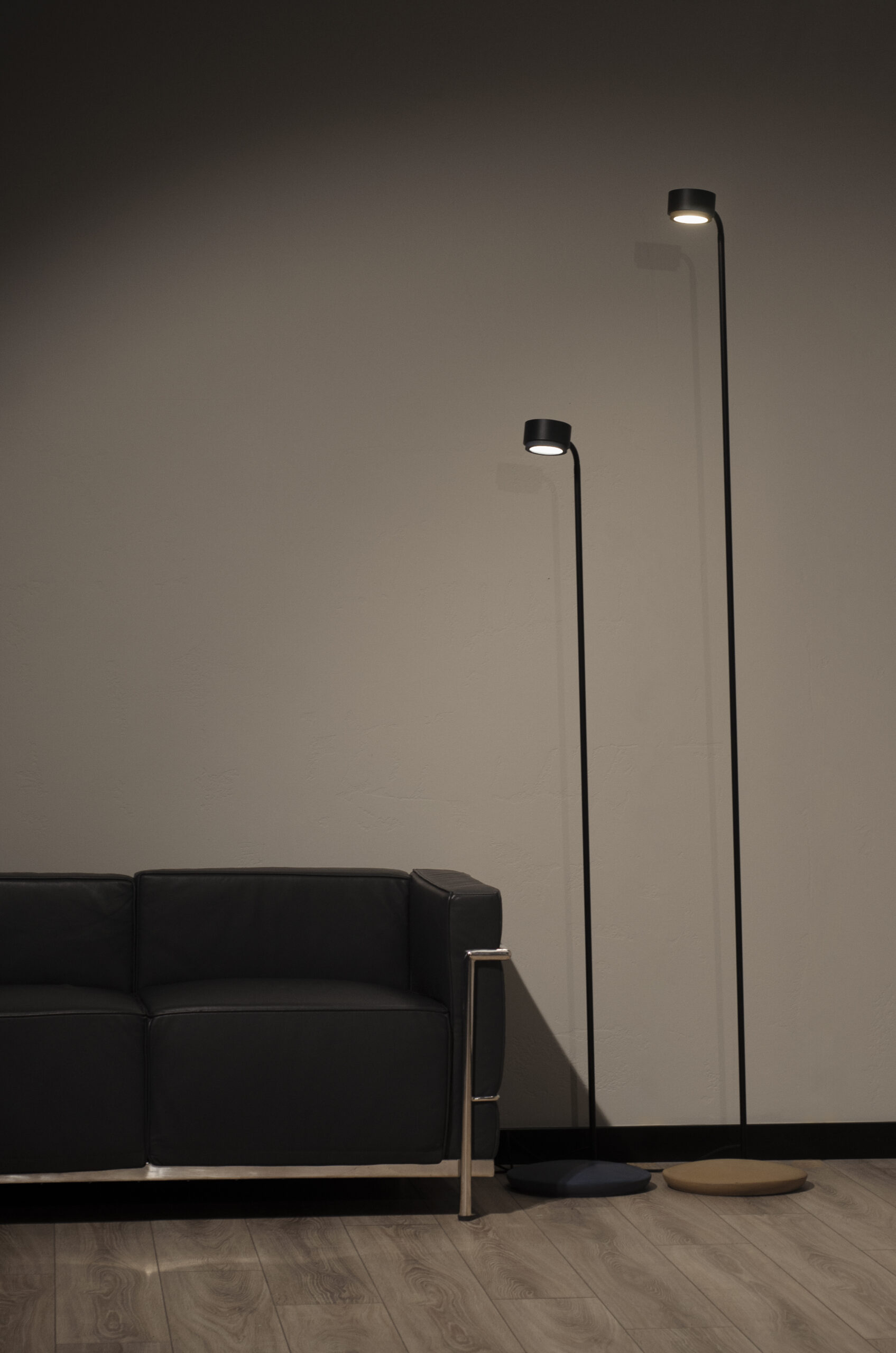 Jubi Concrete is a floor lamp that combines sculptural simplicity with industrial expression. Its construction is based on a massive concrete base and a cylindrical shade finished in matching concrete. These elements are connected by a slim, black powder-coated aluminium tube, giving the design a balanced character and architectural precision. The lamp is available in three heights, making it suitable for different types of spaces – from living rooms to galleries or foyers.