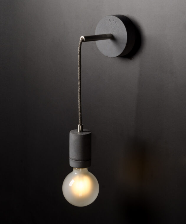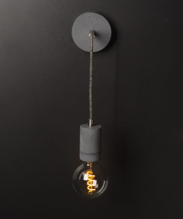 Kalla 1 Wall is the wall-mounted version of the minimalist lamp from the Kalla collection. Its small form – a 5.5 cm concrete cylinder – makes it an ideal subtle light point for modern or industrial interiors. The raw texture of concrete combined with the exposed cable section creates a technical yet elegant wall accent.
