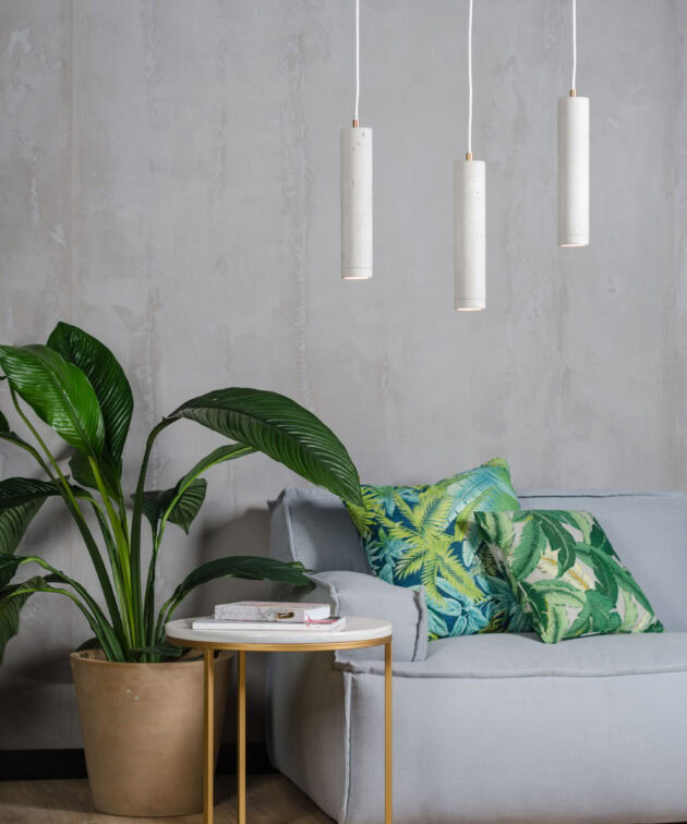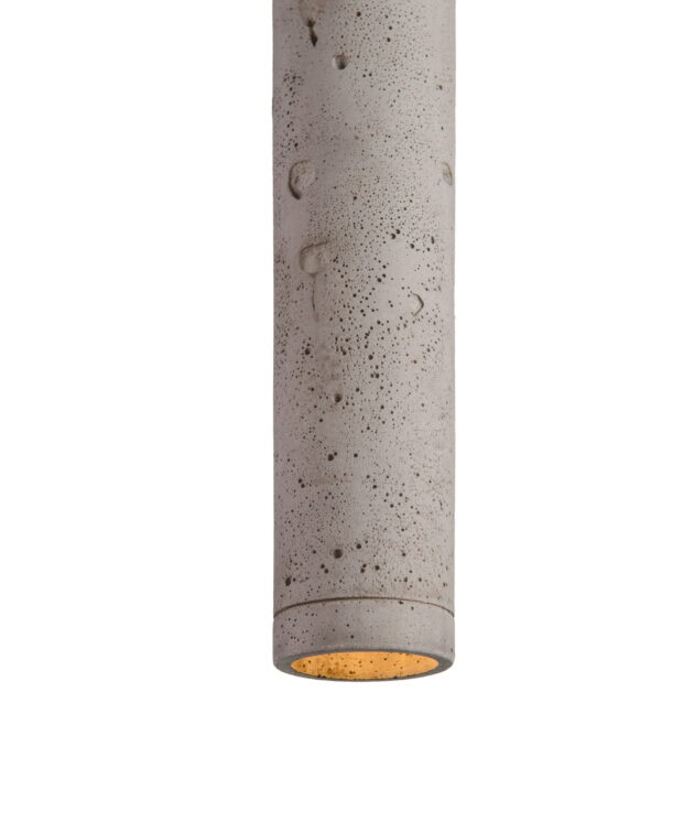 Kalla 11, 21, and 31 are a series of concrete pendant lamps with a cylindrical body, available in three lengths to suit the scale of any interior. Their minimalist design and small diameter (6.3 cm) make them perfect as light points in multi-pendant arrangements – above a dining table, bar, kitchen island, or in commercial spaces. Each piece is hand-cast, ensuring every lamp has a unique concrete surface and character.