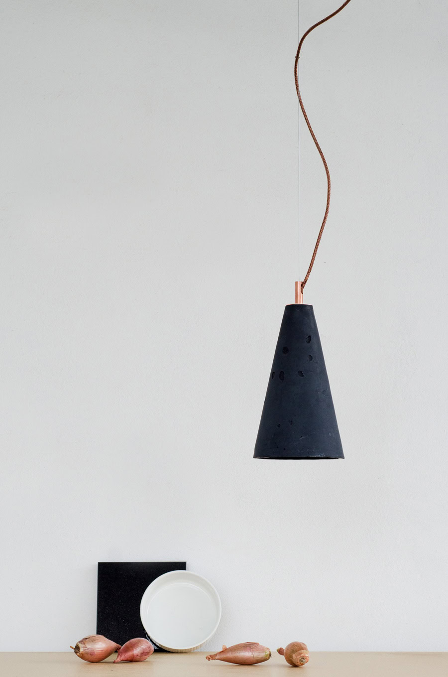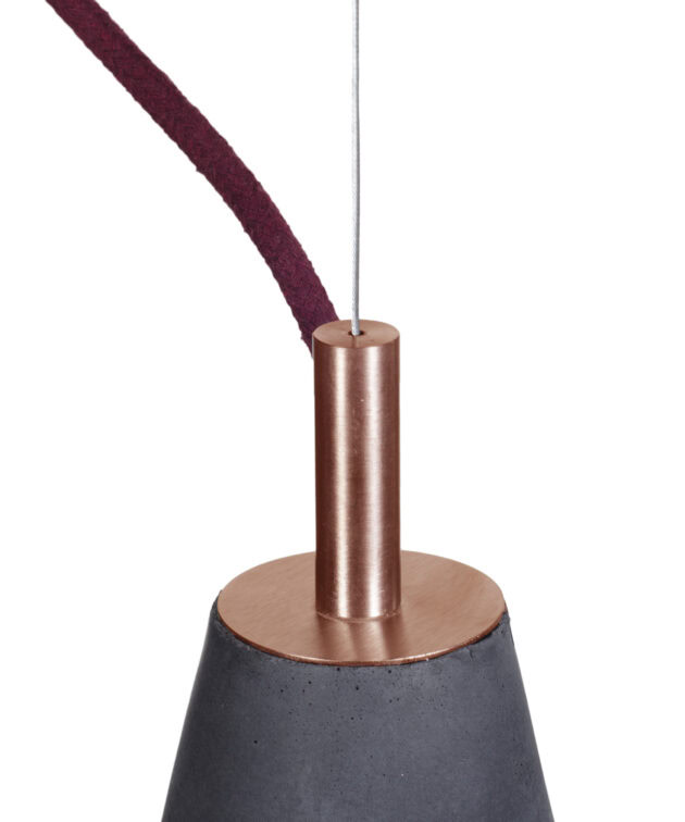 Ceiling rose: concrete, colour-matched to the shade