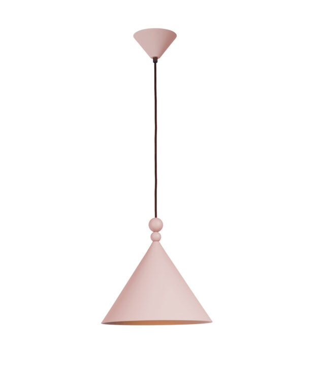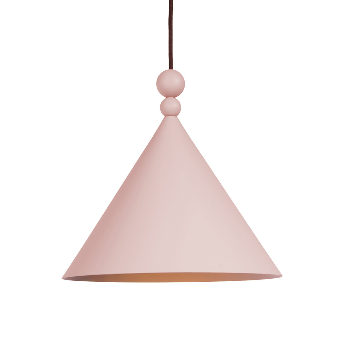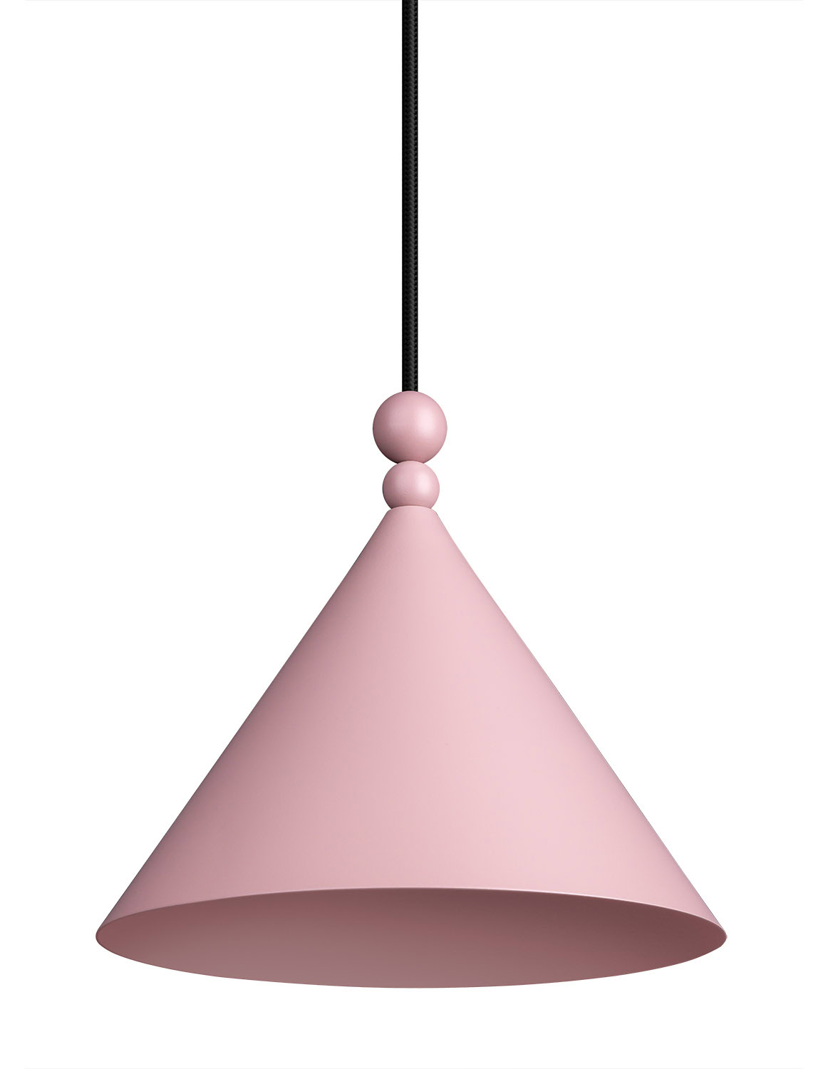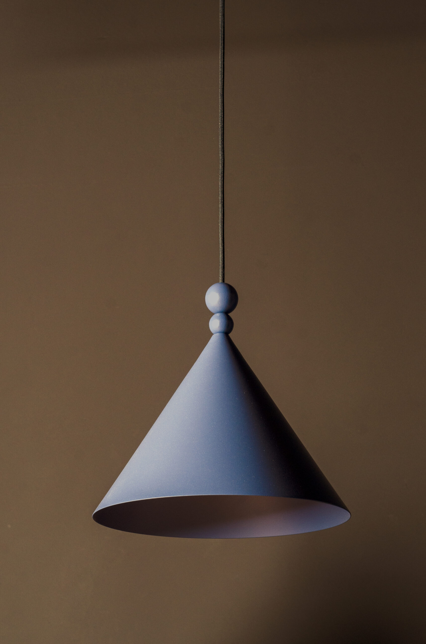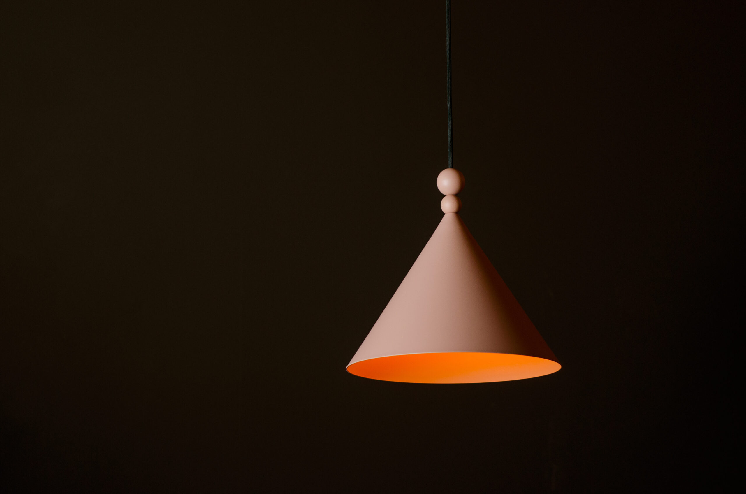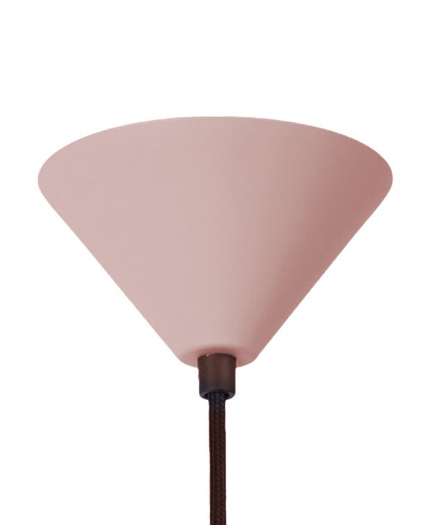 Ceiling rose: conical aluminium, colour-matched to the shade