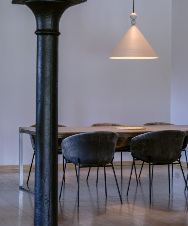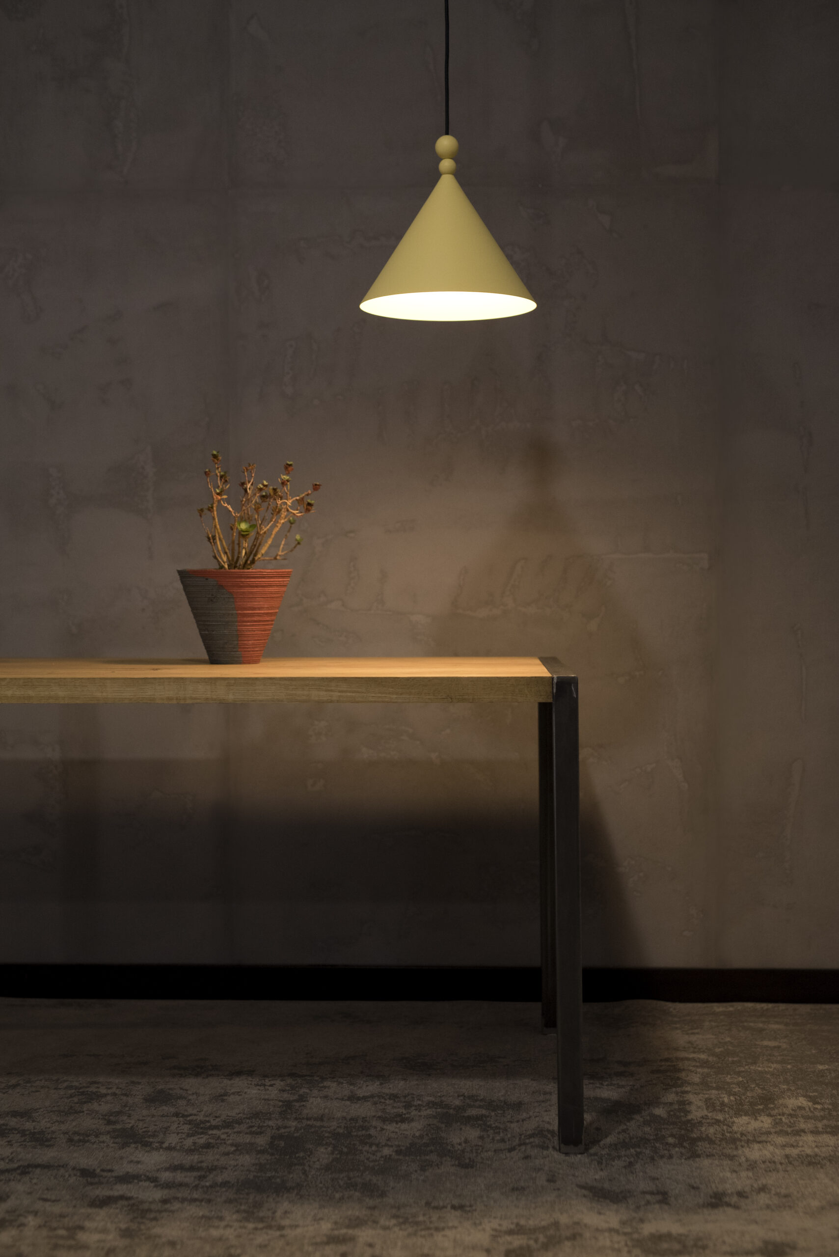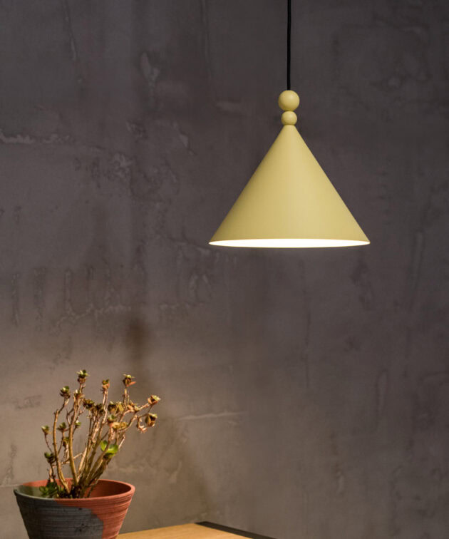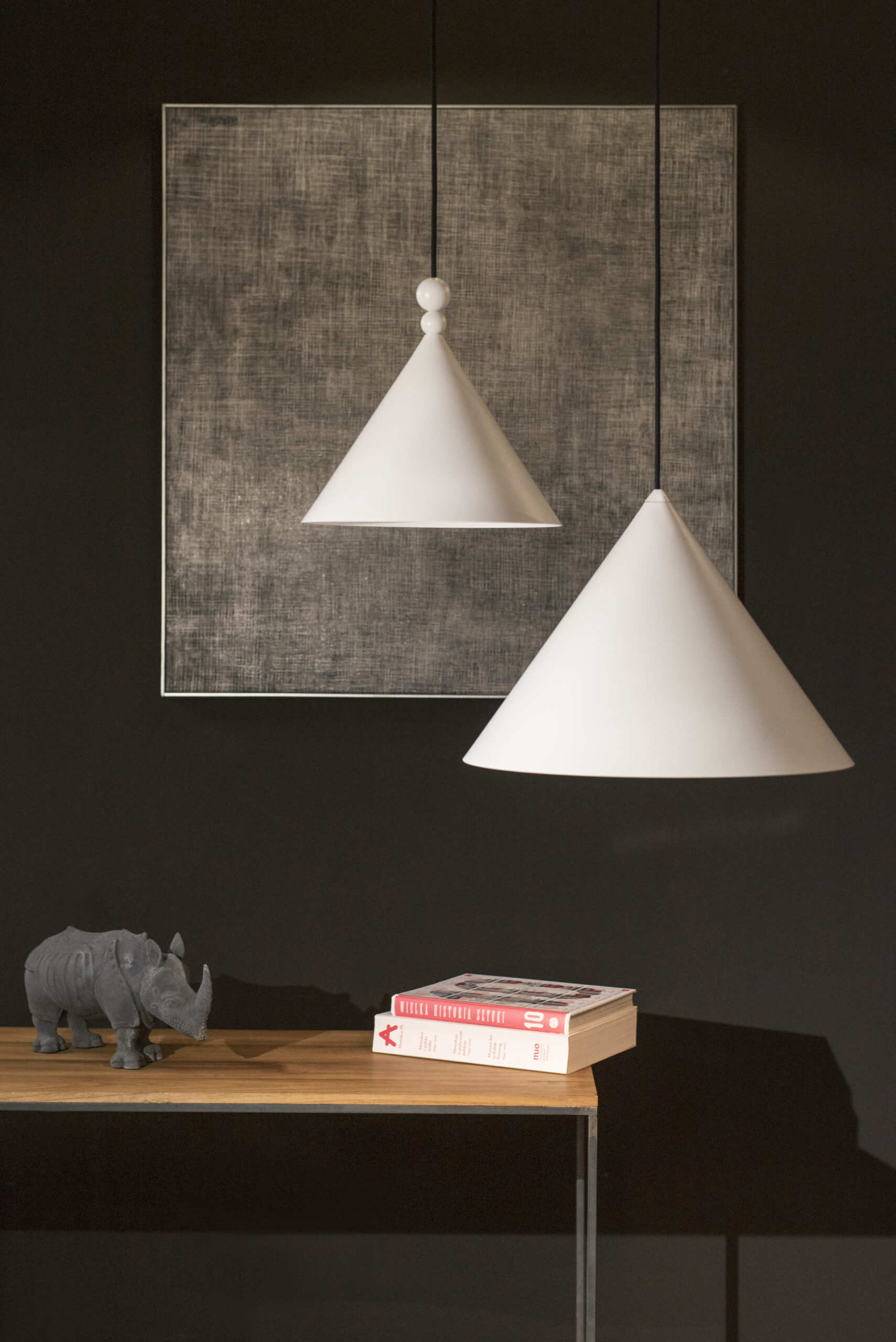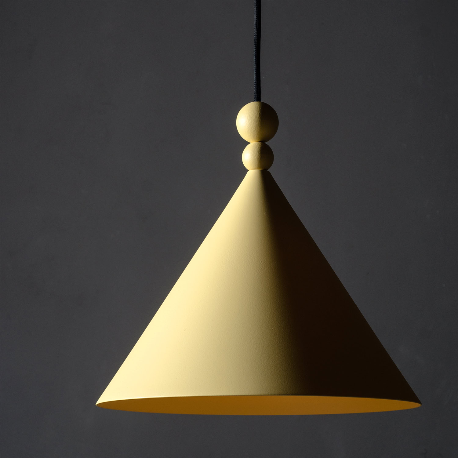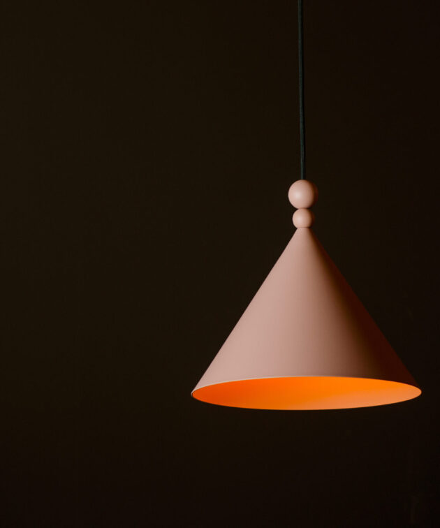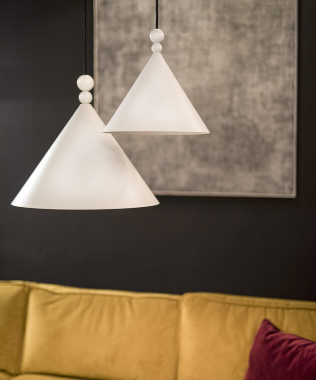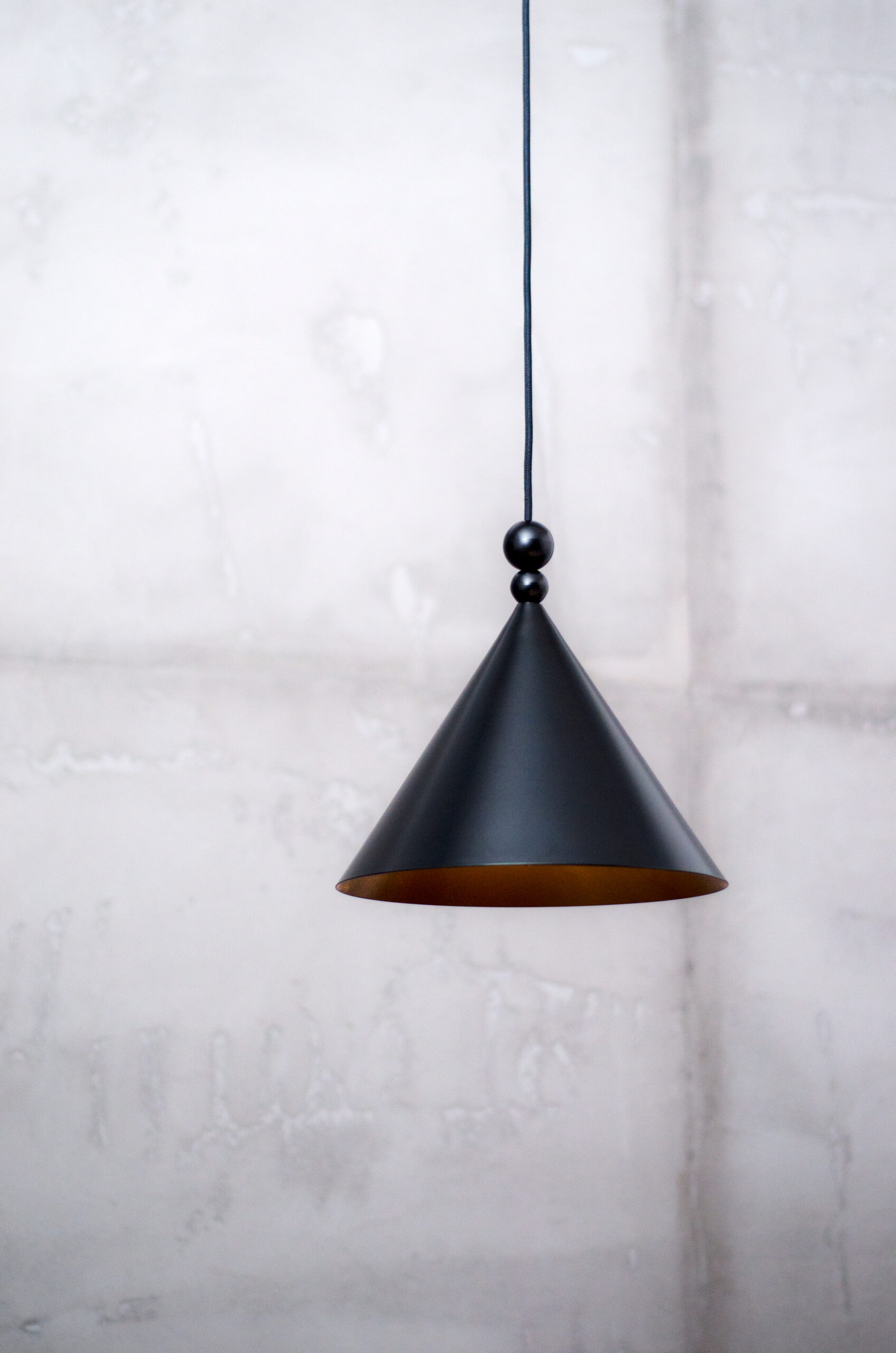 Konko is a pendant lamp that combines a minimalist conical shade with a subtle yet distinctive accent – two spherical elements placed above the lampshade. This characteristic feature gives the lamp its recognisable rhythm and balances its form. Made entirely of powder-coated aluminium and available in four sizes, Konko works beautifully as a single piece or in group arrangements. The design was recognised with the must have 2020 award at Łódź Design Festival.