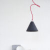Ceiling rose: conical aluminium, colour-matched to the shade