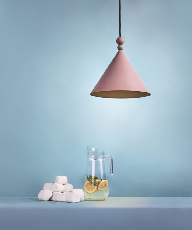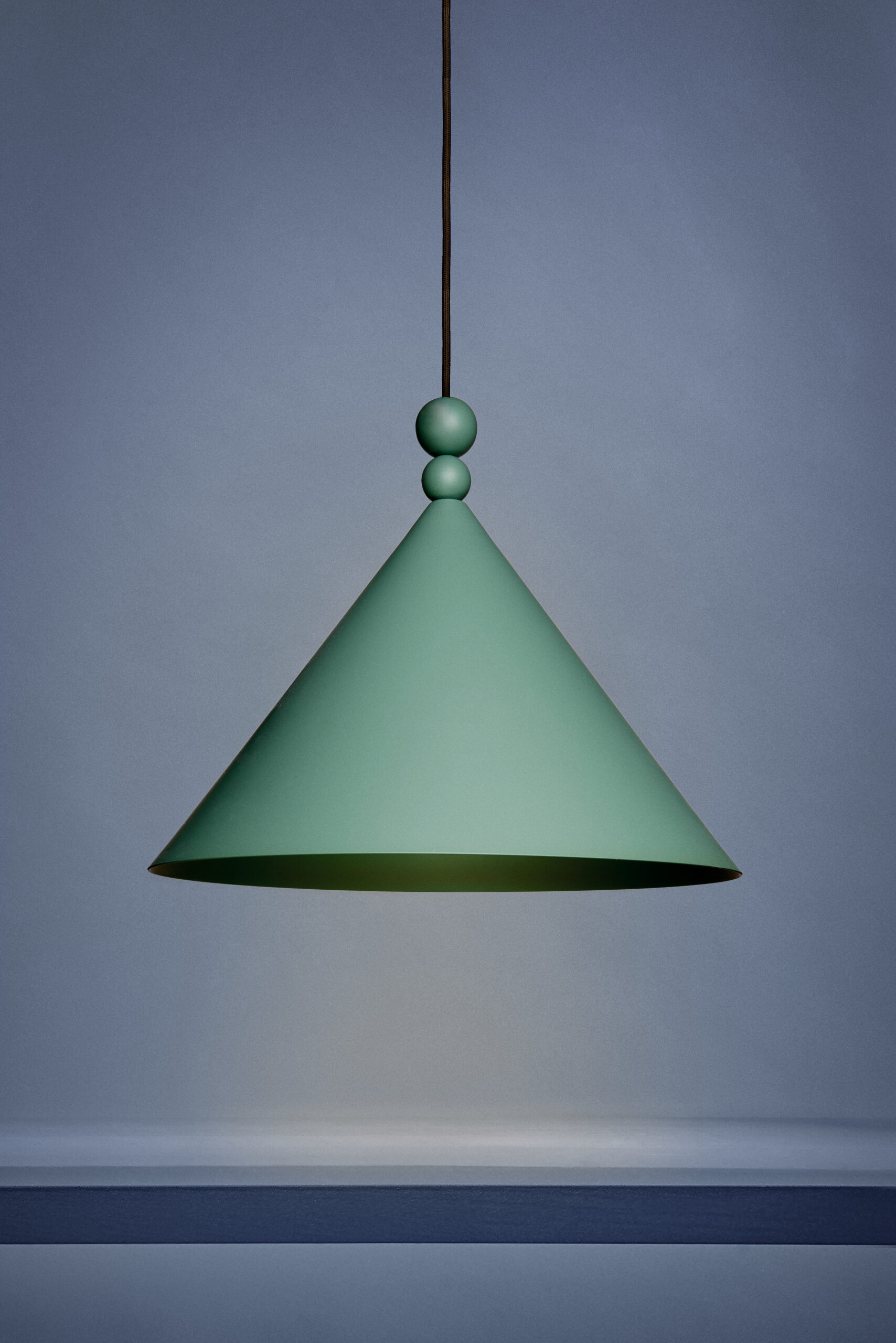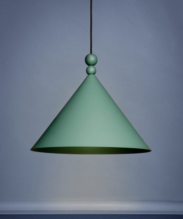 Konko is a pendant lamp that combines a minimalist conical shade with a subtle yet distinctive accent – two spherical elements placed above the lampshade. This characteristic feature gives the lamp its recognisable rhythm and balances its form. Made entirely of powder-coated aluminium and available in four sizes, Konko works beautifully as a single piece or in group arrangements. The design was recognised with the must have 2020 award at Łódź Design Festival.