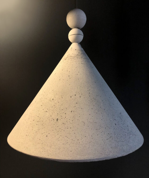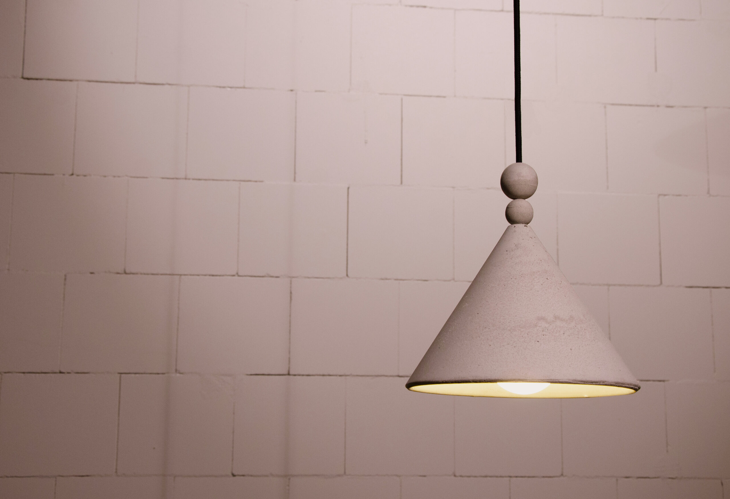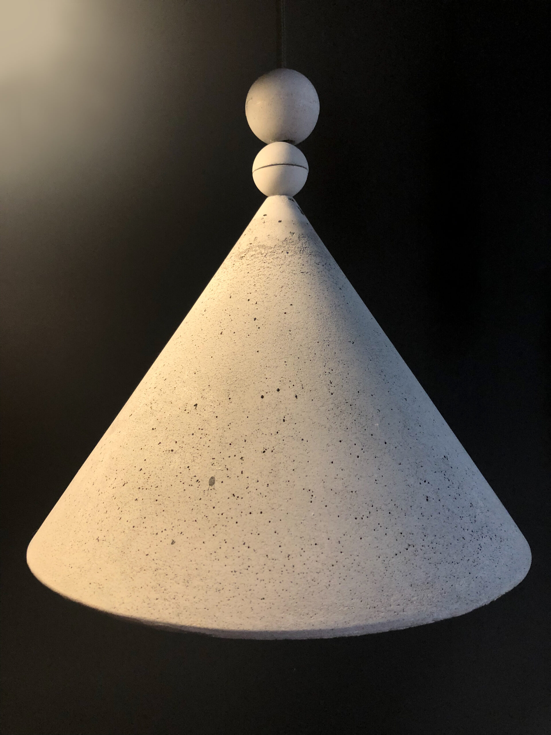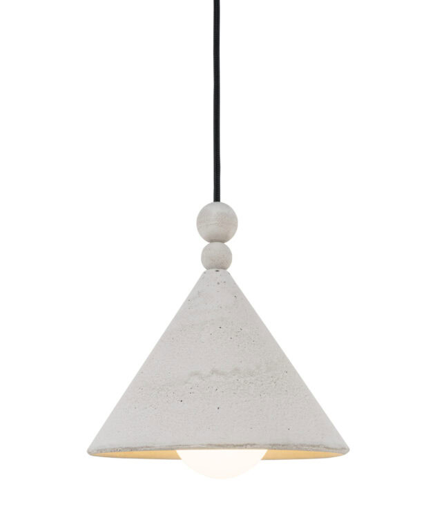 Konko Concrete is a pendant lamp that combines a minimalist conical silhouette with the distinctive finish of architectural concrete. Its raw, geometric form adds a loft-style expression and subtle visual weight to interiors. Each hand-cast concrete shade features a unique texture, giving every piece its own character.