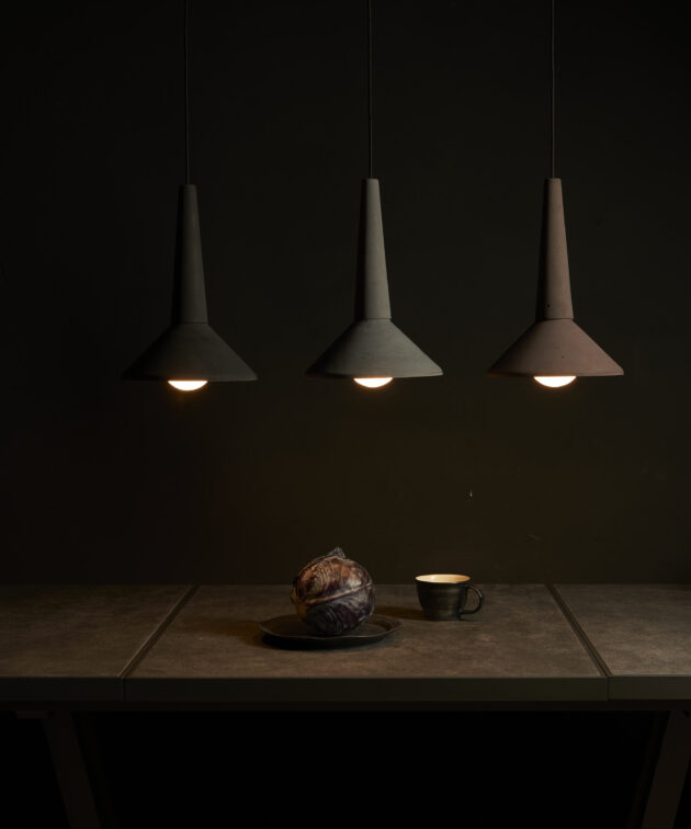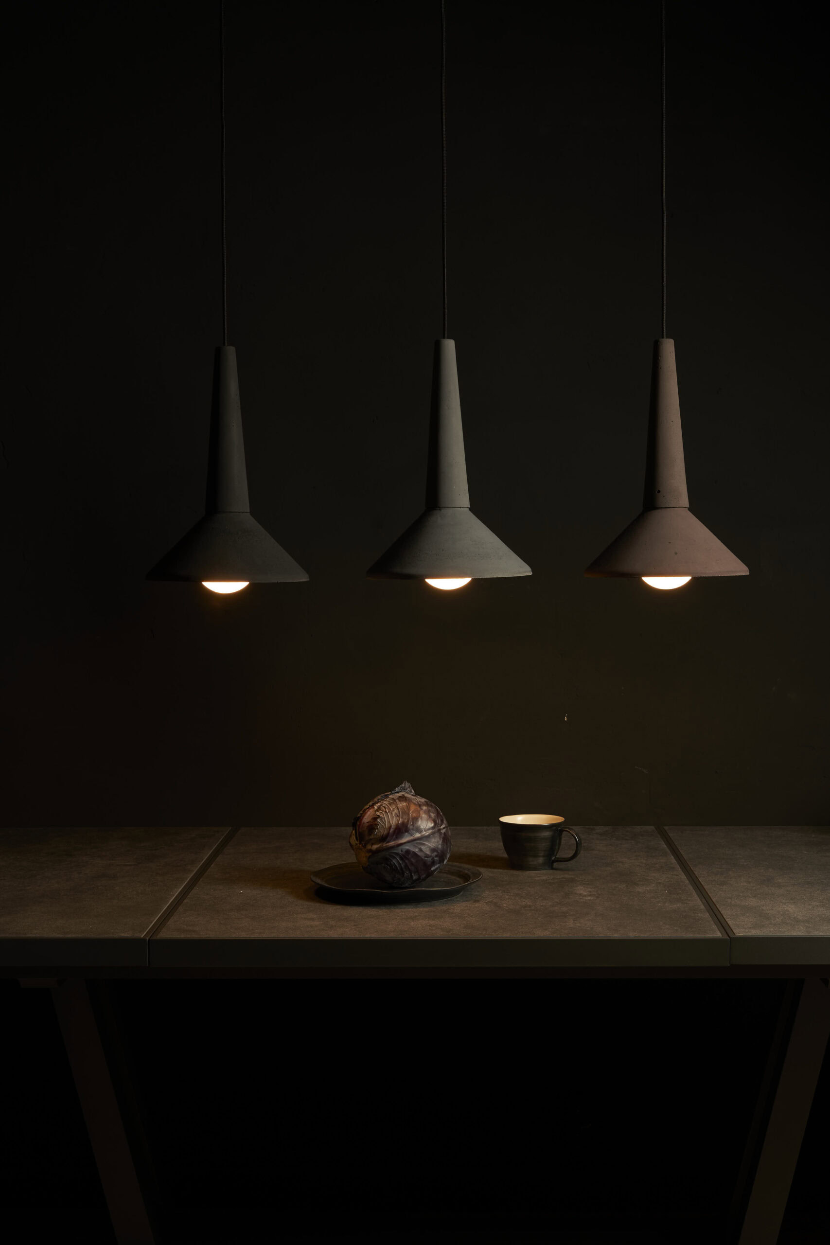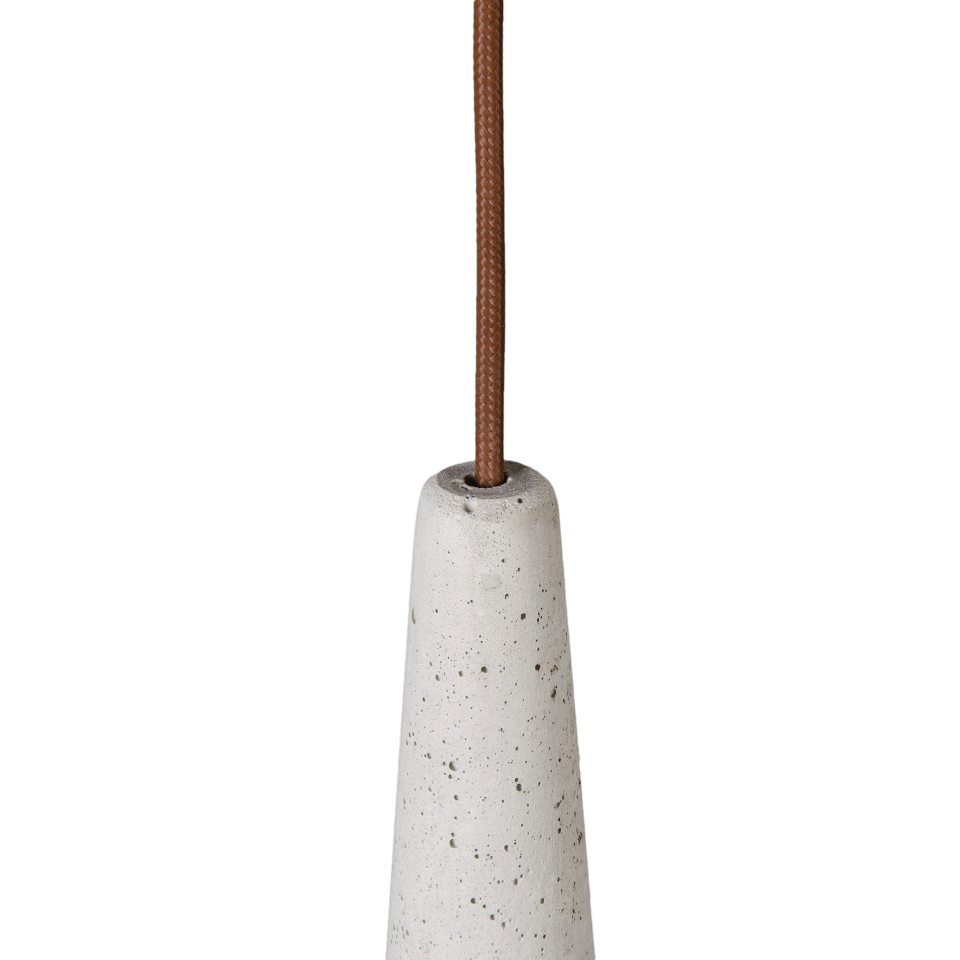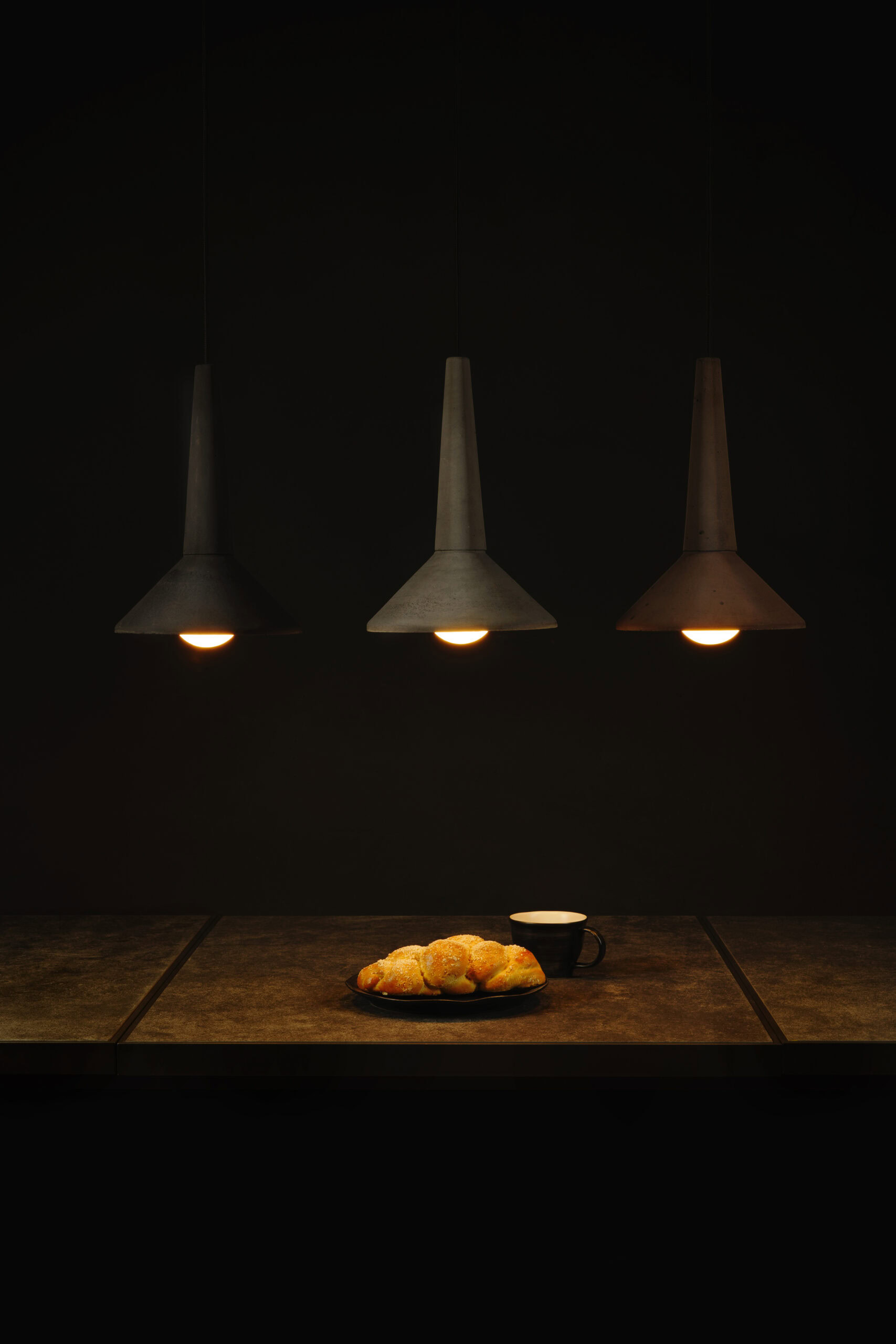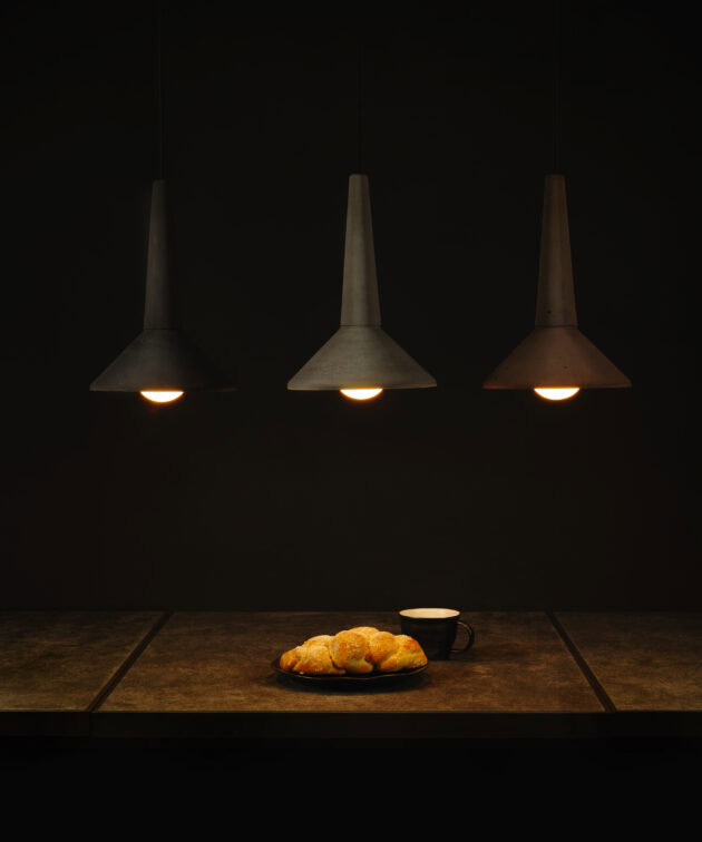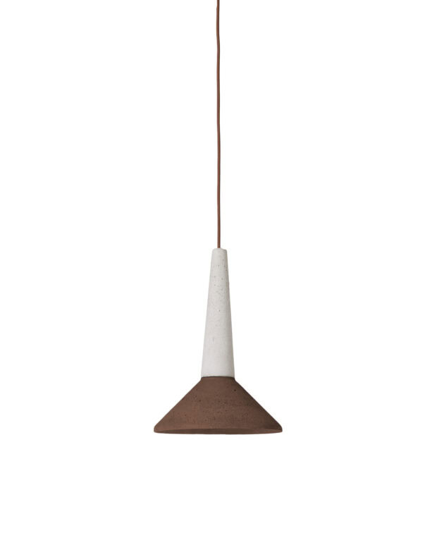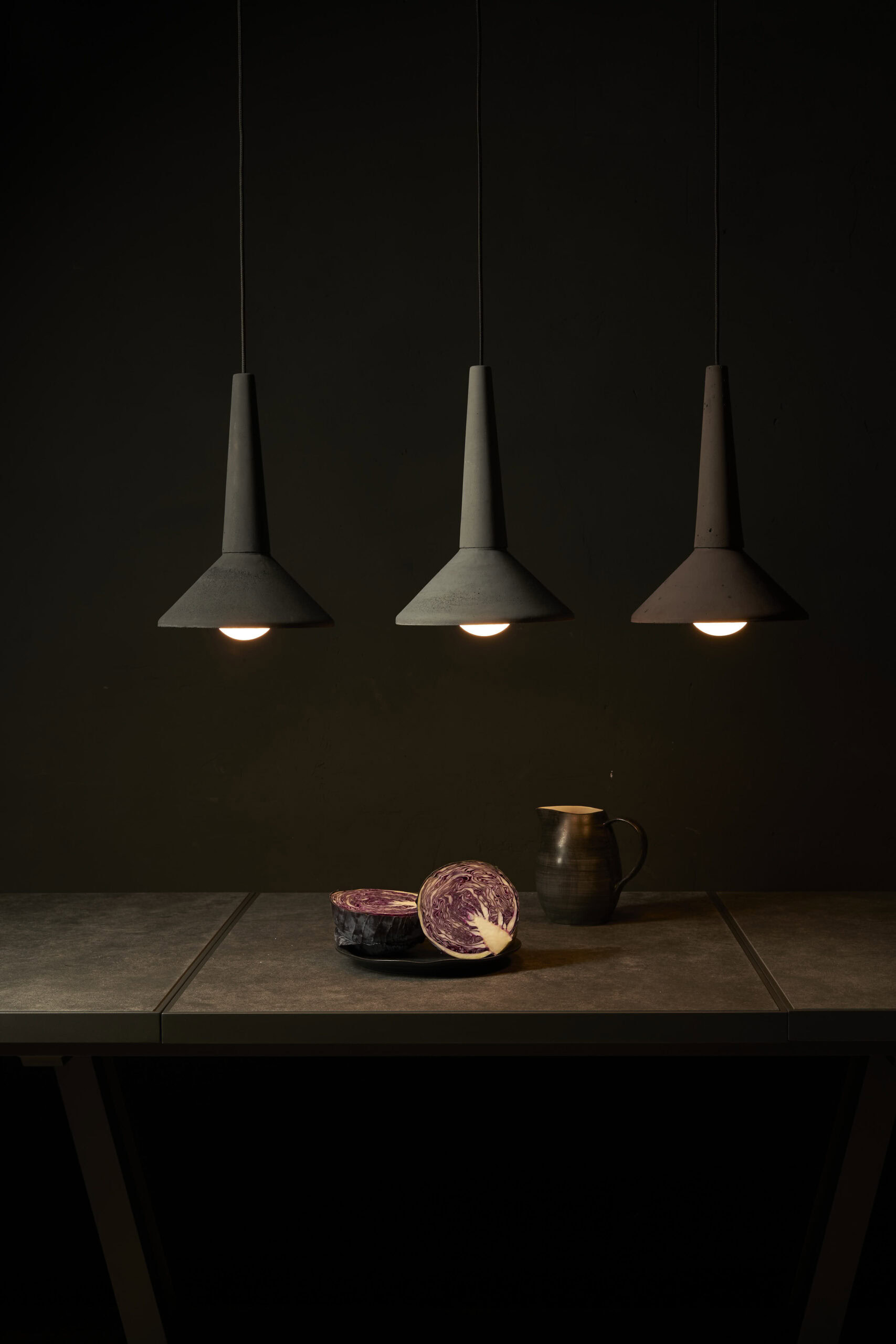 Medano is a pendant lamp that stands out with its distinctive sculptural shape. The shade is composed of two hand-cast concrete sections, giving each piece a unique character. The contrast between the upper and lower parts allows for playful colour combinations – you can mix two different shades of concrete to match your interior.