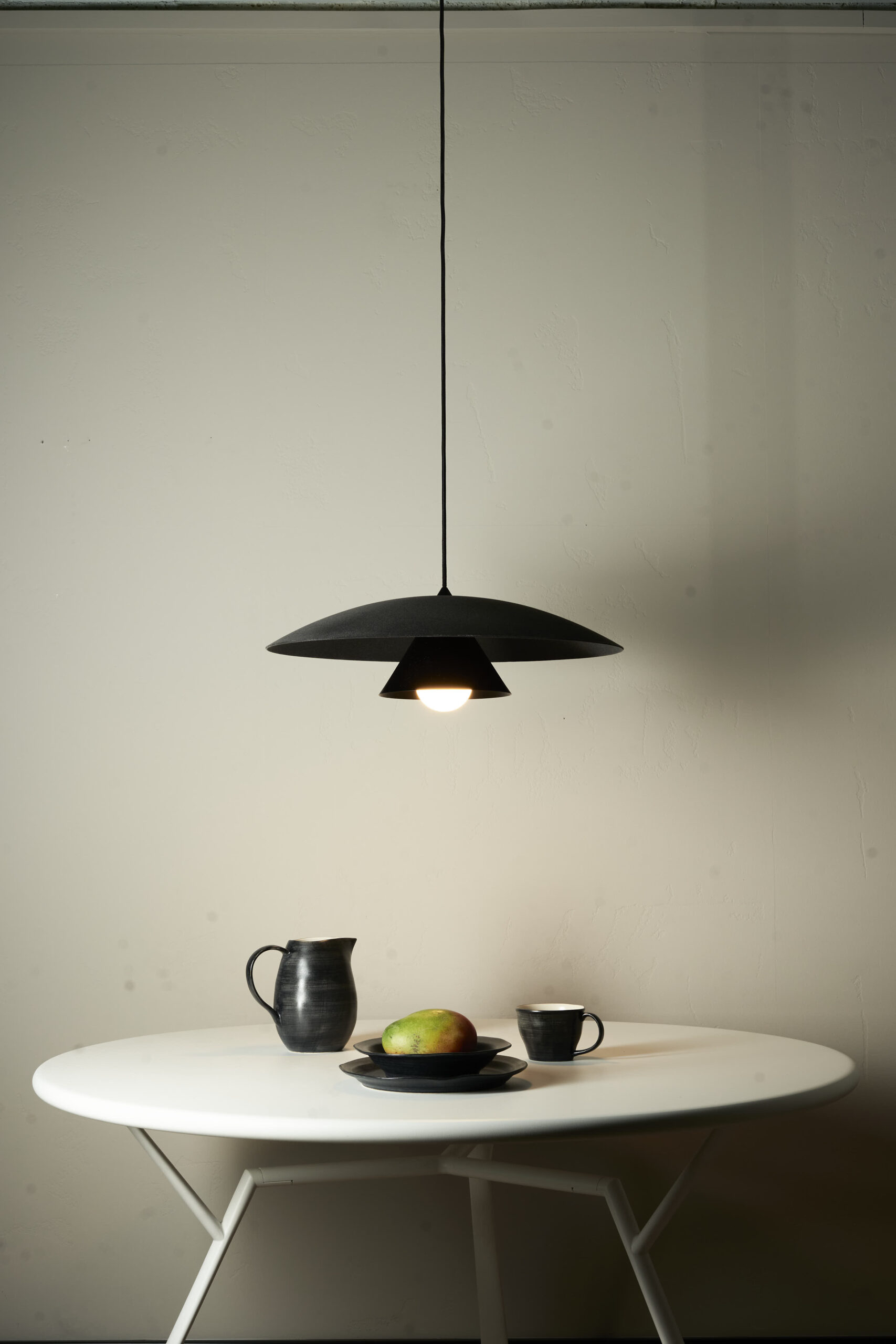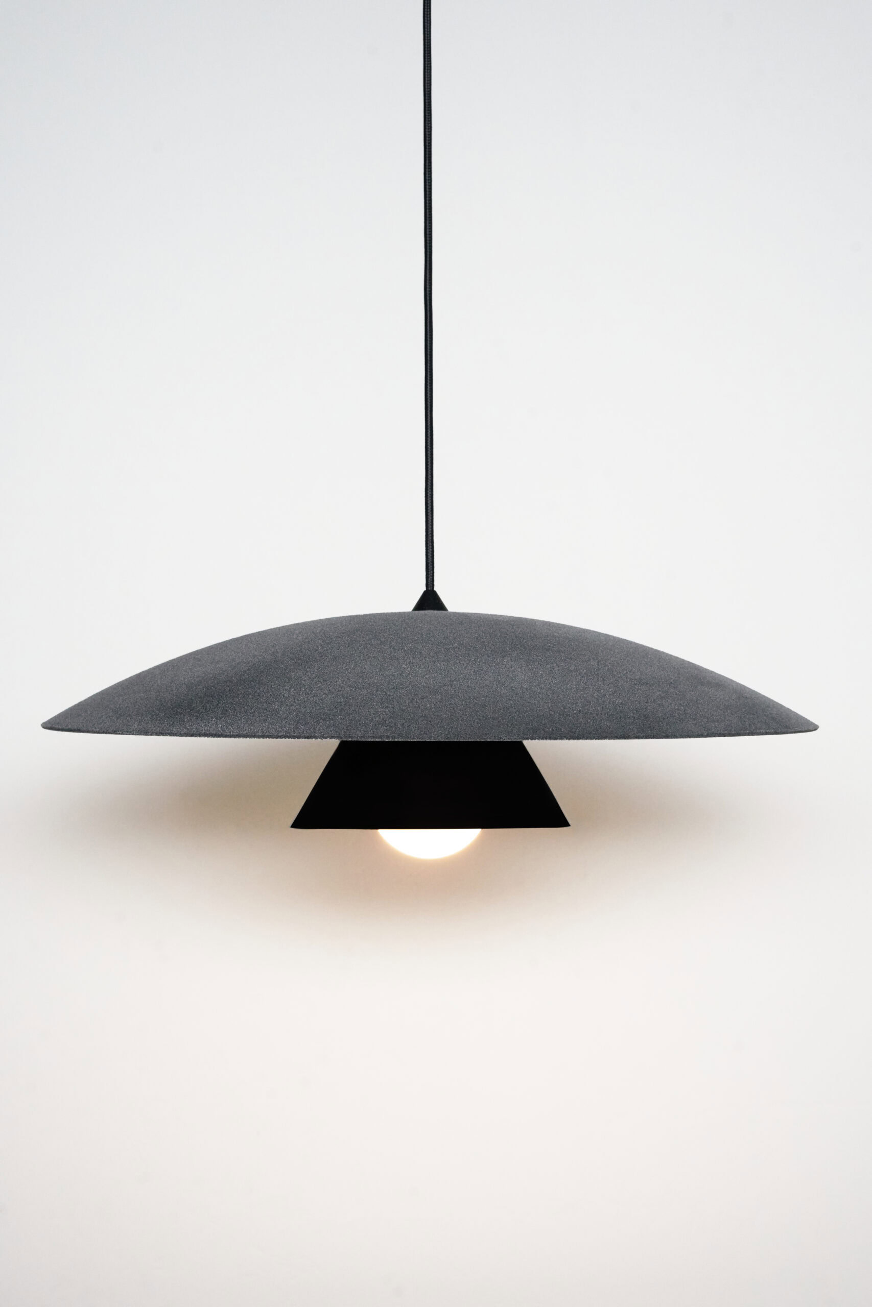 Olemi Slight Velvet is a pendant lamp that balances geometric purity with a soft, tactile finish. The upper part of the shade is coated with the distinctive velvet texture, giving the lamp a warm and sophisticated character. The lower part, powder-coated in a minimalist finish, creates a subtle contrast. Sphere and cone – two archetypal shapes – merge here into one cohesive and harmonious whole.