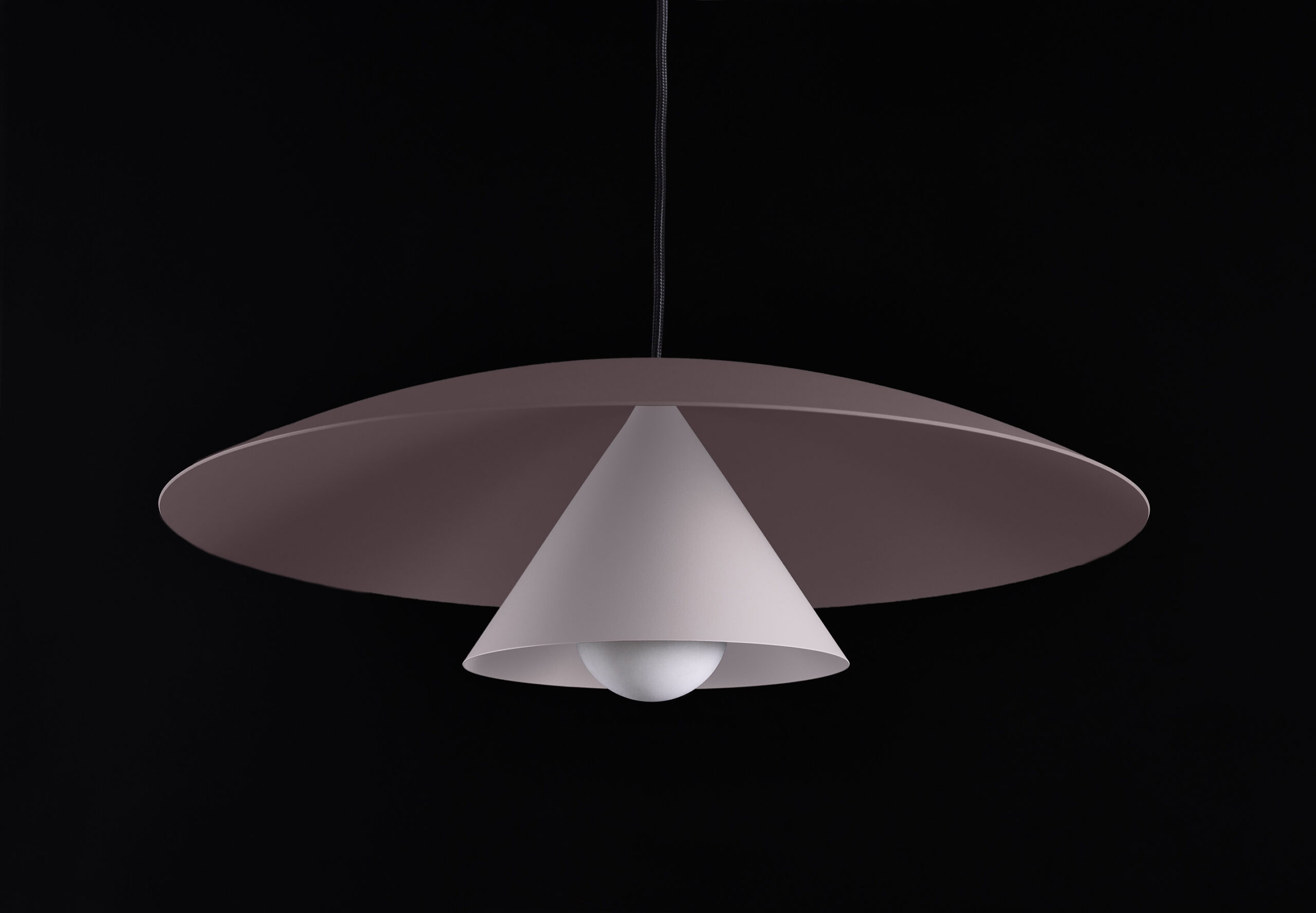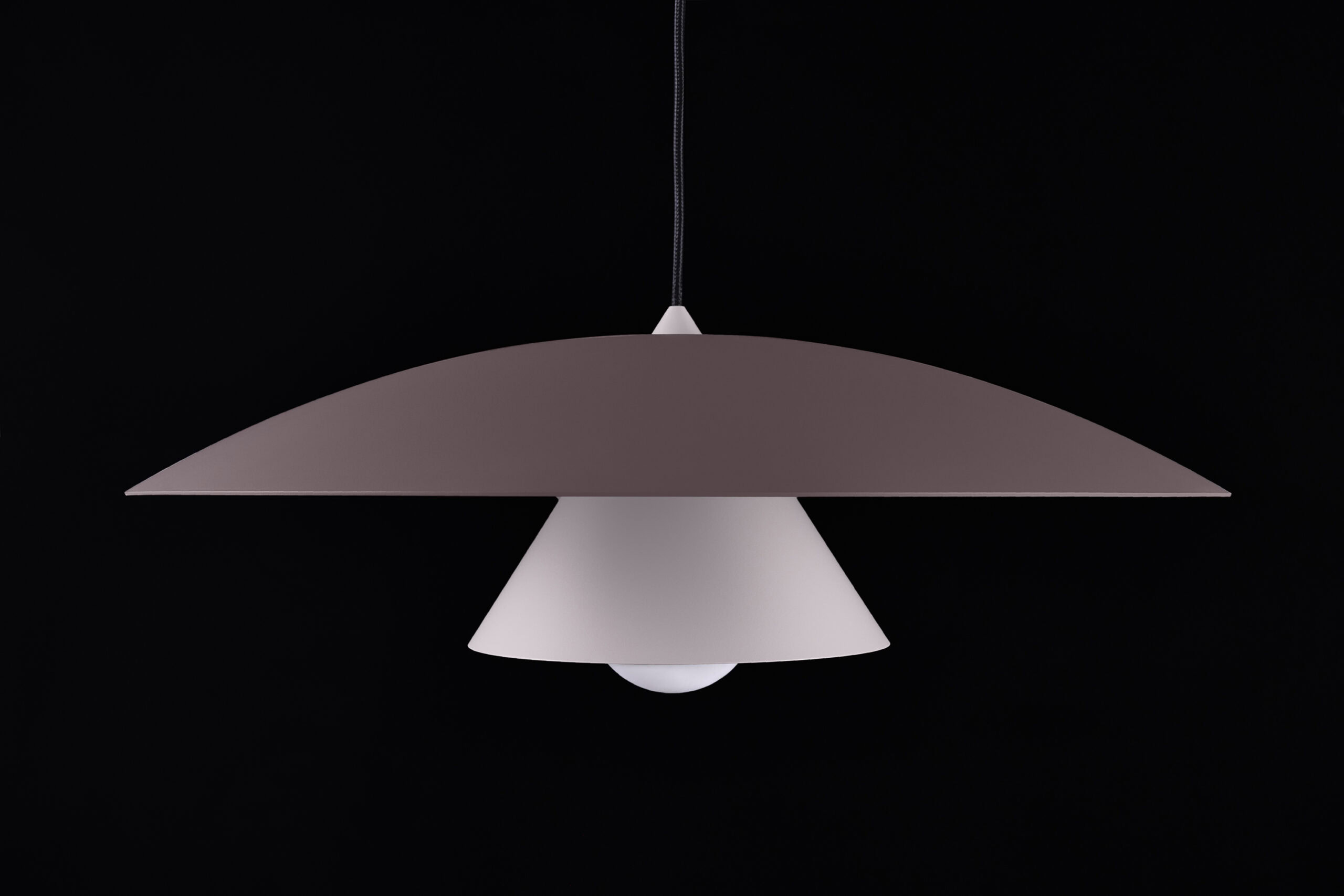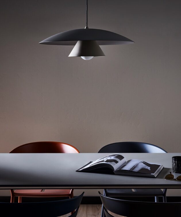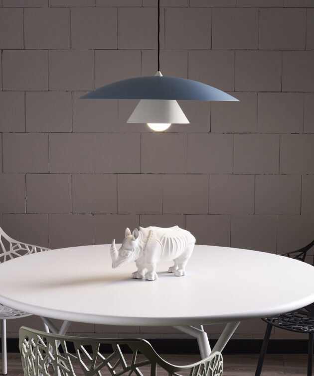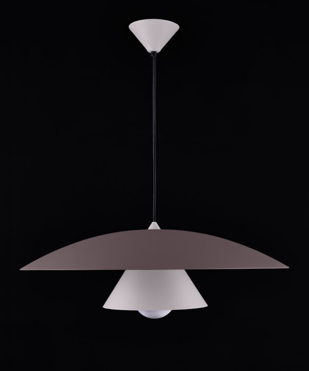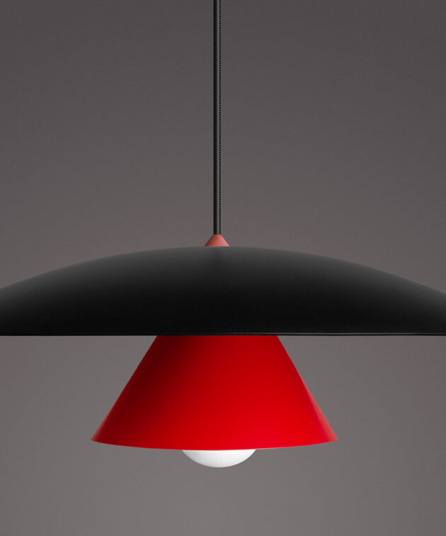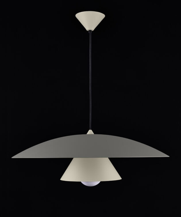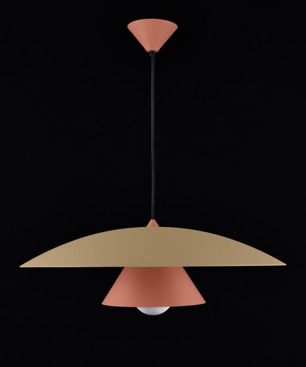 Olemi is a modern pendant lamp that brings together two classic shapes: the sphere and the cone. Its simple geometry gains new expression through a refined two-tone finish – the upper and lower parts of the shade are painted in different colours, accentuating the form and giving the lamp visual lightness. This subtle detail makes Olemi a highly versatile model, suitable for both modern and classically inspired interiors.