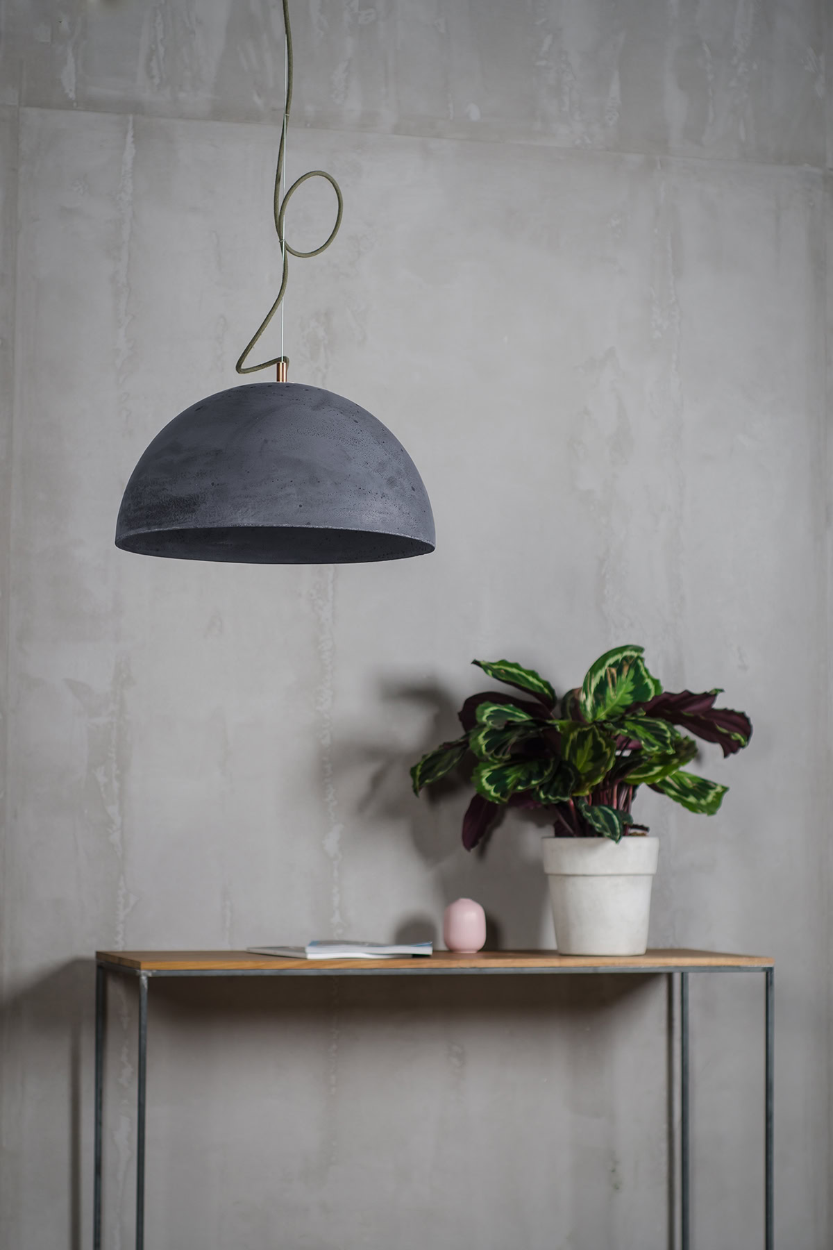 Ceiling rose: concrete, colour-matched to the shade