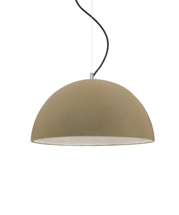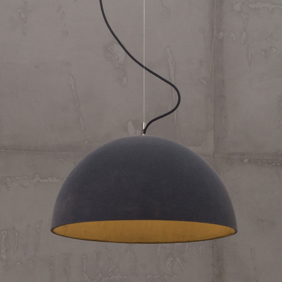 Sfera Velvet is a collection of handcrafted pendant lamps that combine the noble texture of concrete with a soft velvet coating. The exterior of the dome and the ceiling rose are covered with a velvet finish, adding refinement without losing the lamp’s loft character. The interior of the shade remains raw and matte – a deliberate choice that highlights the material’s texture and enhances the lighting effect.