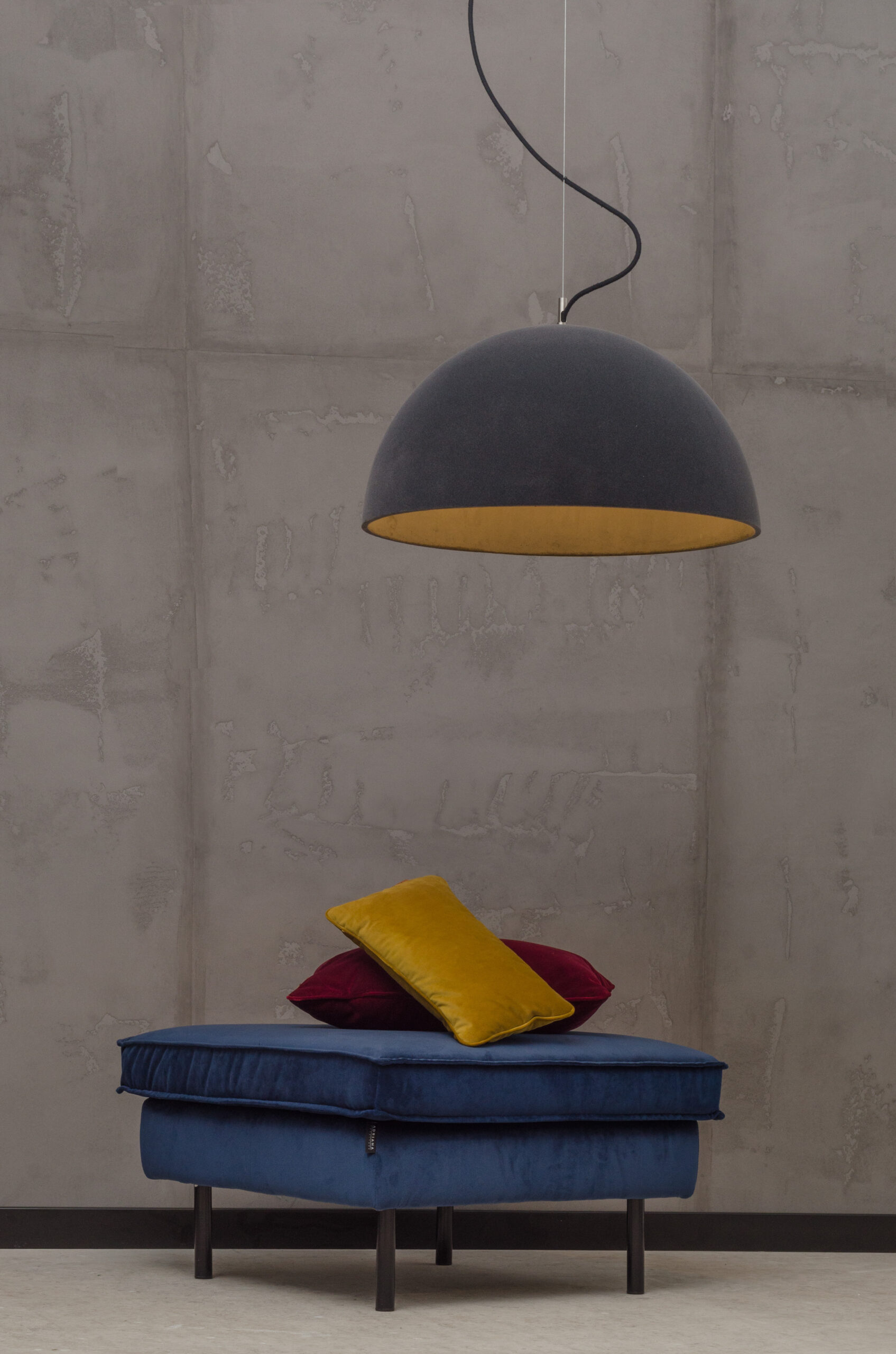 Each lamp can be configured individually by selecting the concrete shade and velvet finish separately – designed with a specific interior in mind.