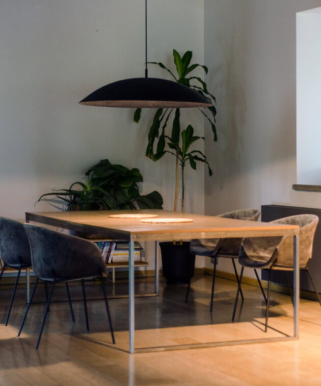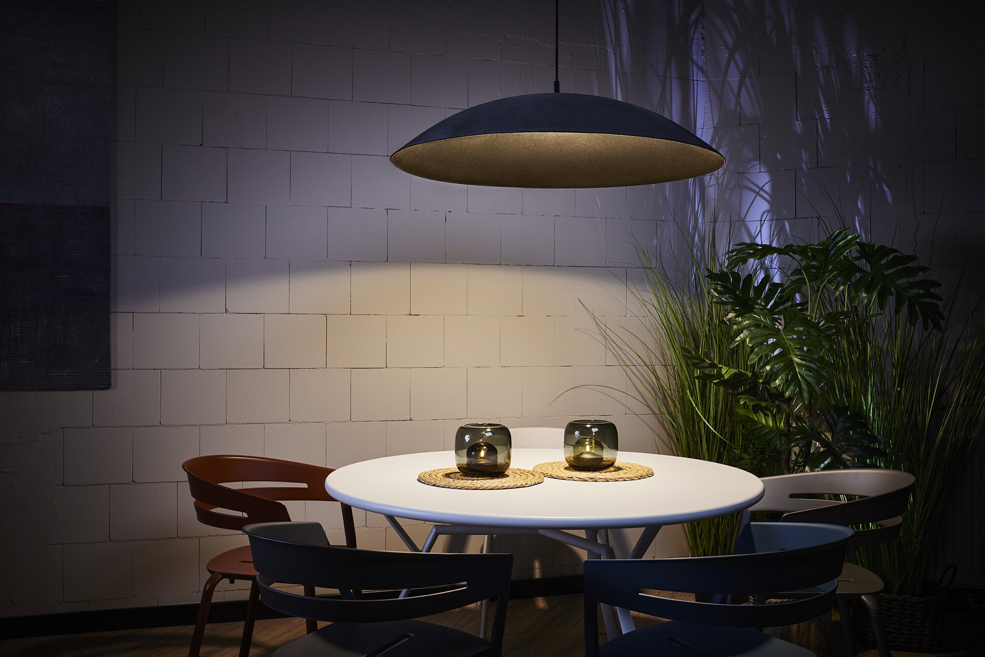 In the Telstar Velvet variant, the entire aluminium surface is covered with a velvet-textured finish, giving the lamp a softer visual character and elegant detail.